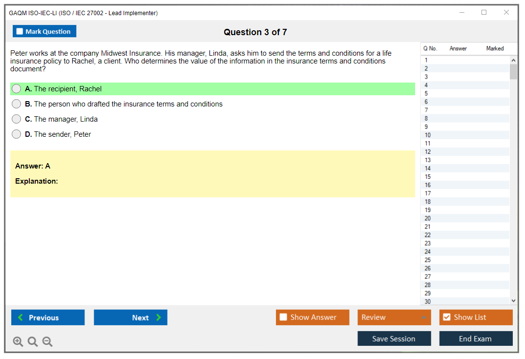The GAQM ISO-IEC-LI Exam evaluates a candidate's ability to implement, manage, and assess an Information Security Management System (ISMS) in accordance with the guidelines and principles of ISO/IEC 27002.