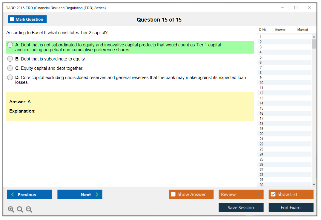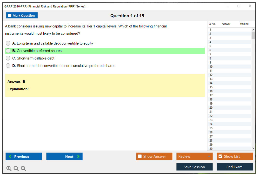 The GARP 2016-FRR (Financial Risk and Regulation) Series Exam is designed to assess the knowledge and skills of financial risk professionals in various areas of risk management and regulatory practices.