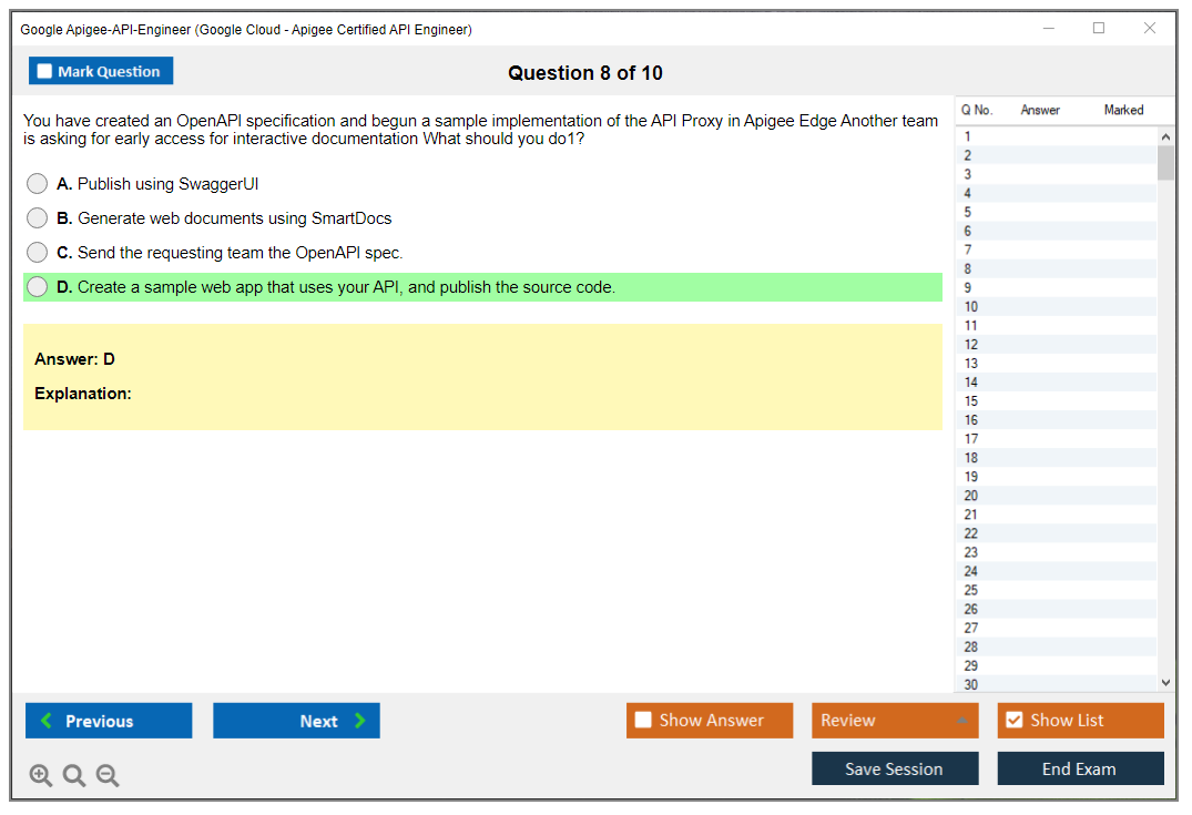 I found DumpsBoss Apigee API Engineer practice questions incredibly useful. The quality of content and the accuracy of the answers made my study sessions productive and effective.