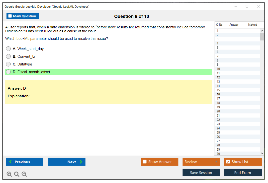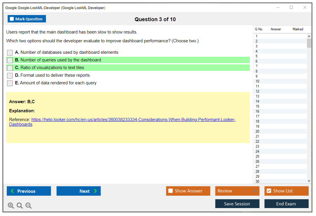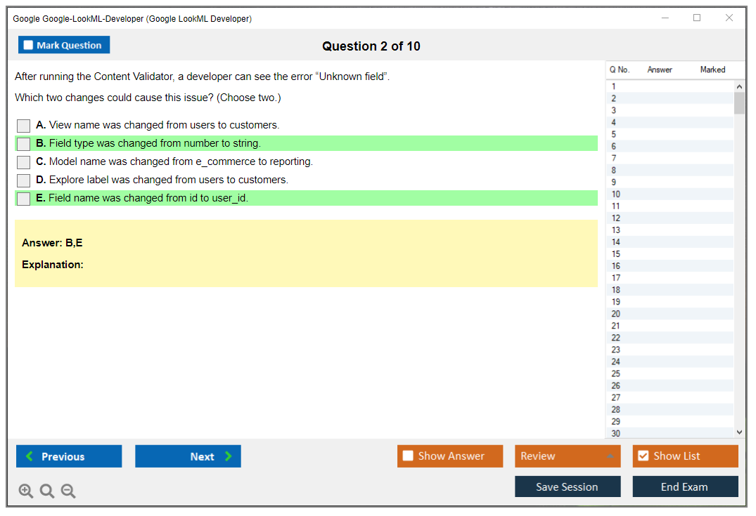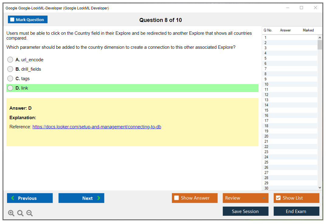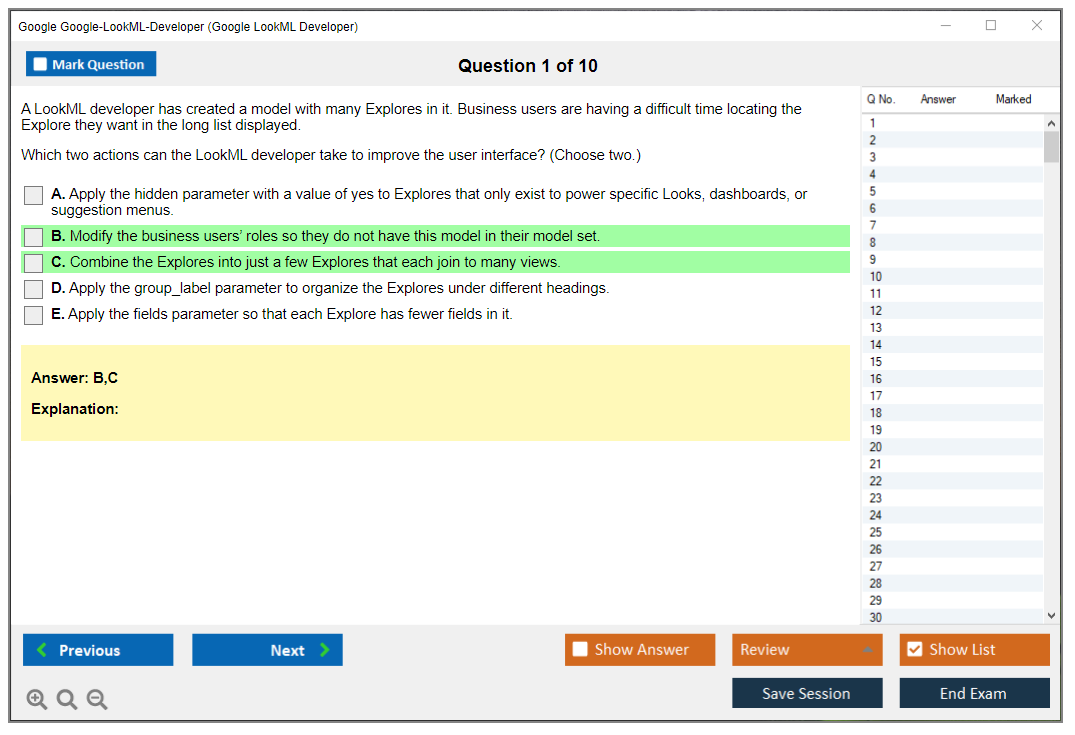 Sample questions for the Google LookML Developer exam can be found on the official Google Cloud certification website or through various exam preparation resources and practice tests.