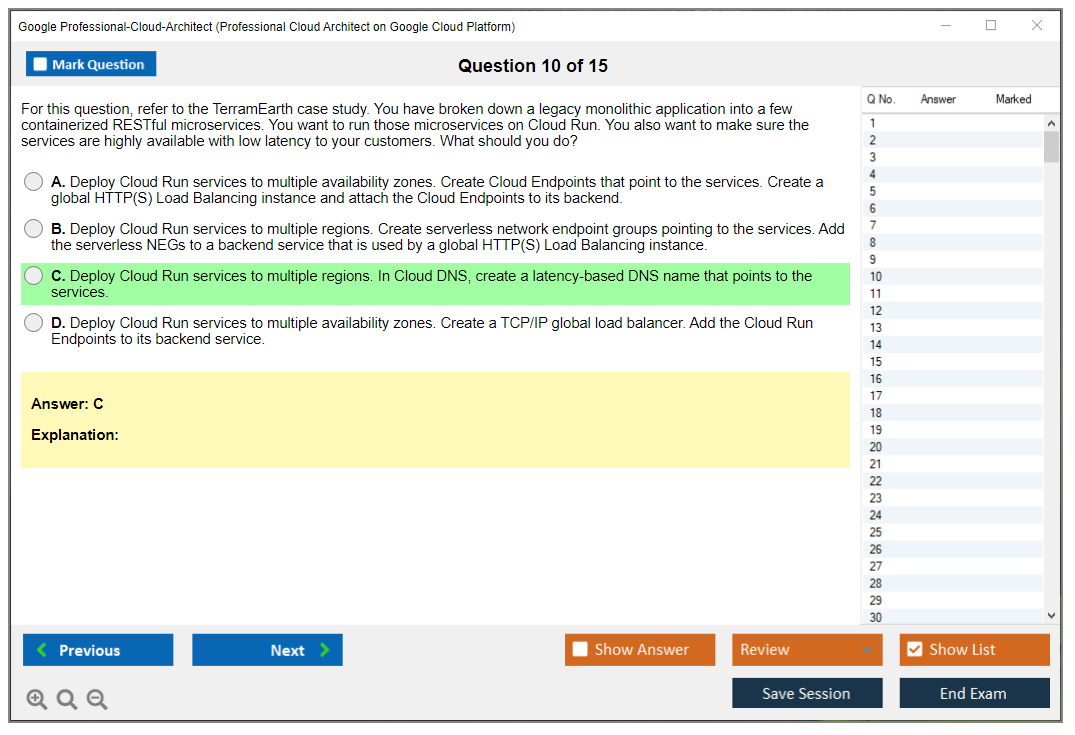 The Google Professional-Cloud-Architect (Google Certified Professional - Cloud Architect (GCP)) exam is designed to assess an individual's ability to design, develop, and manage robust, secure, scalable, highly available, and dynamic solutions to drive business objectives. It measures the ability to leverage Google Cloud technologies.
