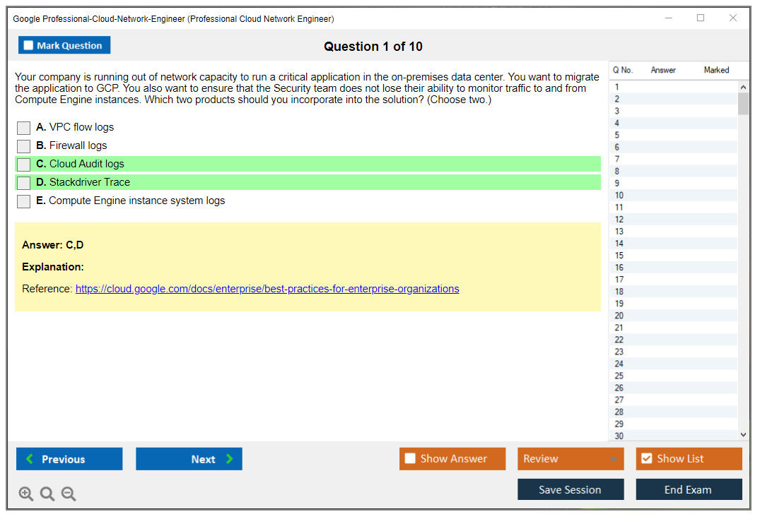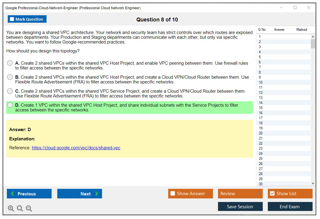 Sample questions for the Google Professional Cloud Network Engineer exam can be found on the official Google Cloud certification website or through various online certification preparation platforms.