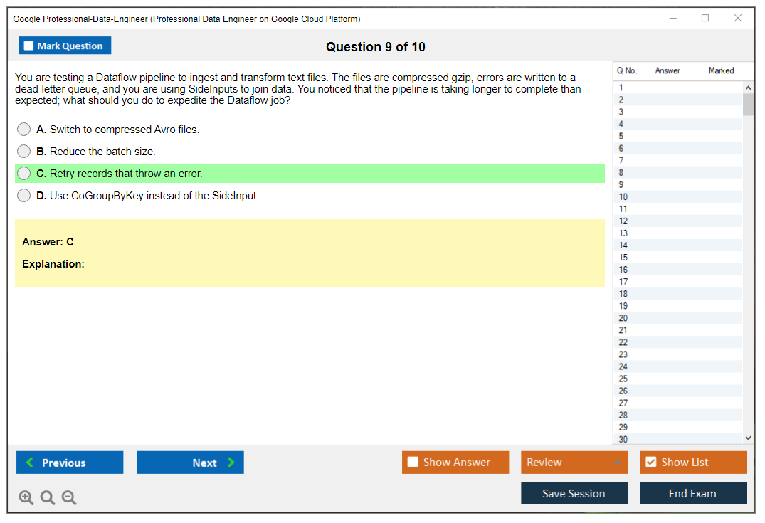 Impressed beyond measure with the Professional Data Engineer dumps from DumpsBoss! The questions are thoughtfully curated, ensuring a holistic understanding of the exam topics. It's evident that DumpsBoss prioritizes quality, making them my go-to choice for exam preparation.
