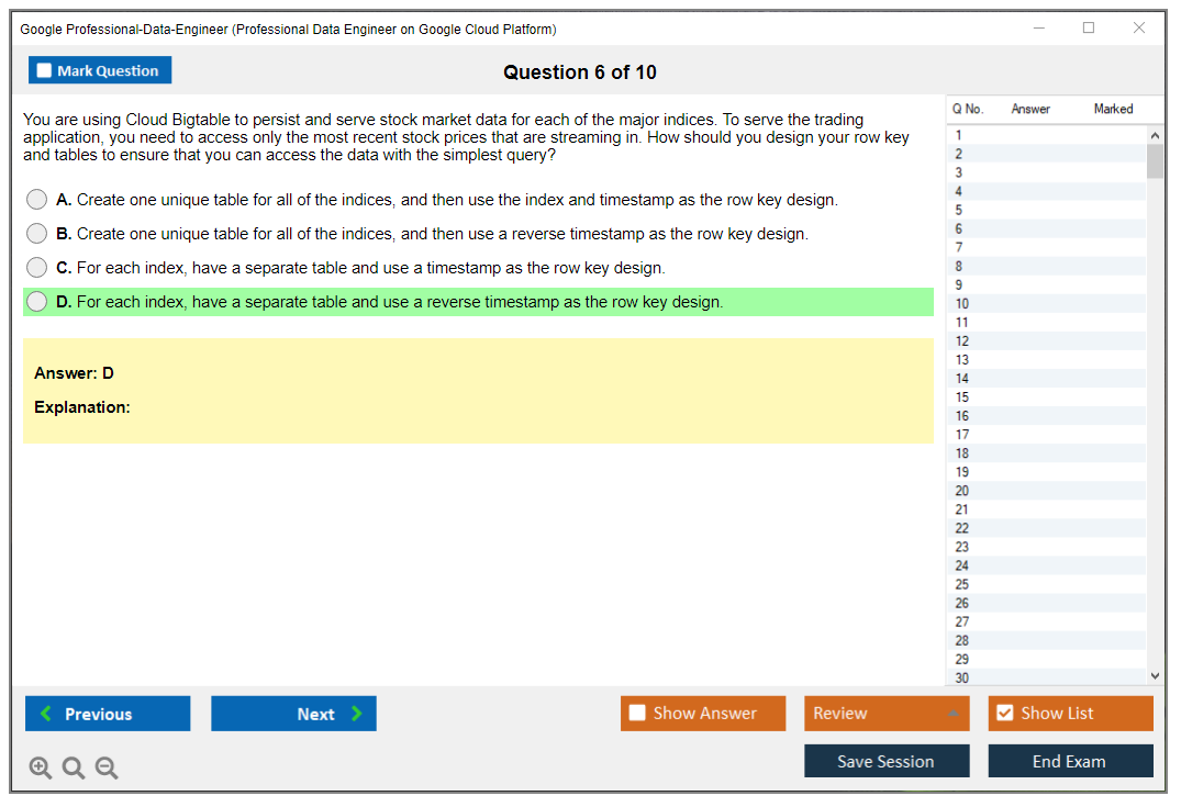 Thanks to DumpsBoss, the Google Professional Data Engineer Exam was a breeze. The practice tests were challenging, and the detailed answers provided a solid understanding of the concepts. Thumbs up to DumpsBoss for their excellent resource!
