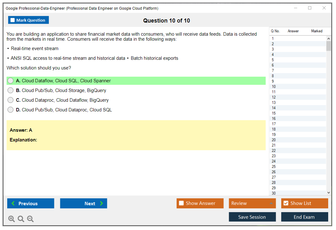 DumpsBoss offers an exceptional Professional Data Engineer Practice Exam that truly prepares you for the certification. The practice questions are detailed and closely mimic the actual exam. A must-have for serious candidates!