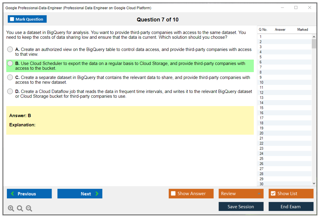 DumpsBoss exceeded my expectations for Google Professional Data Engineer Exam prep. The material is well-organized, and the practice tests are a valuable resource. I highly recommend DumpsBoss for exam success.