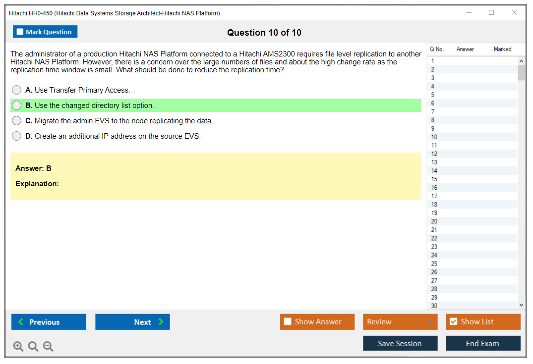 The Hitachi HH0-450 exam is an advanced-level certification exam that focuses on the skills required to design and architect storage solutions using the Hitachi NAS Platform. It is aimed at IT professionals who want to demonstrate their expertise in Hitachi storage solutions.