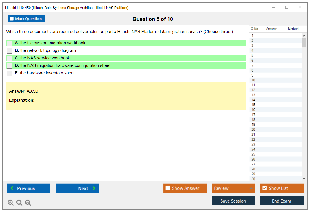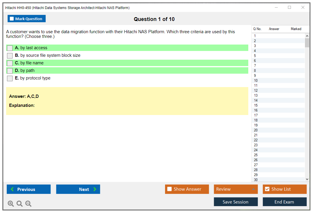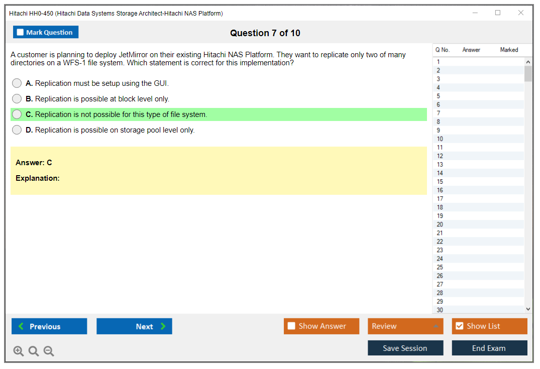 The Hitachi HH0-450 exam, also known as the Hitachi Data Systems Storage Architect-Hitachi NAS Platform, is designed for professionals who architect and design storage solutions using the Hitachi NAS Platform. It validates the candidate's skills and knowledge in the field of storage architecture.