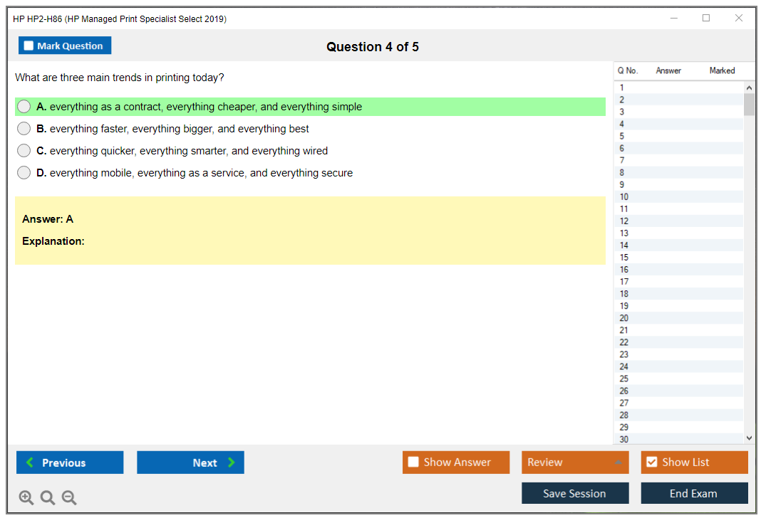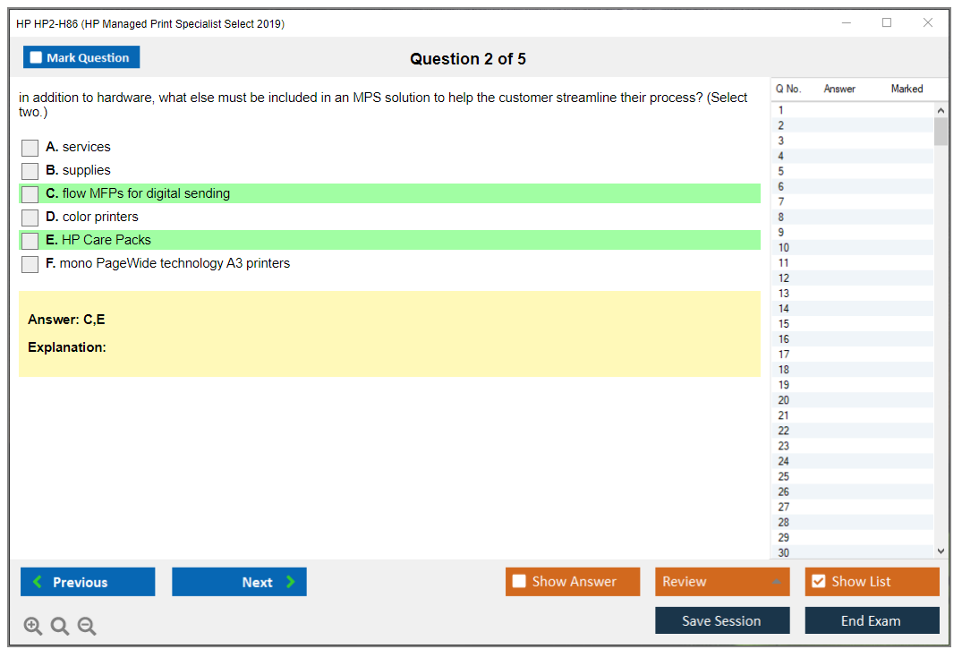 The HP HP2-H86 (HP Managed Print Specialist Select 2019) Exam is designed for professionals who want to validate their skills and knowledge in managing HP print solutions. It covers various aspects of HP Managed Print Services (MPS) including solution selling, implementation, and management.