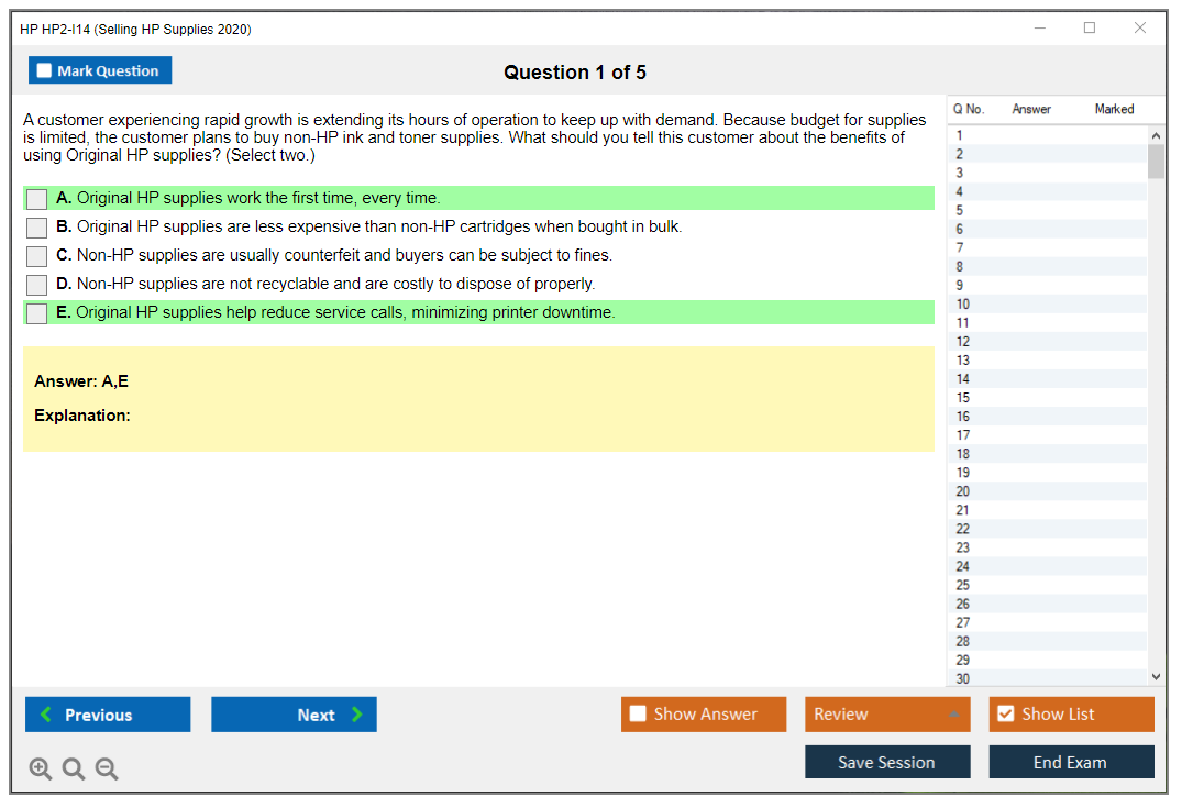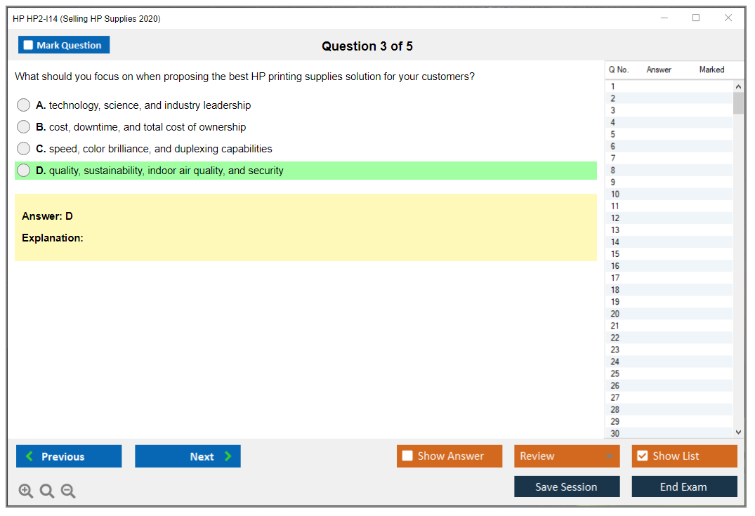 The HP HP2-I14 (Selling HP Supplies 2020) exam is designed for sales professionals who specialize in selling HP supplies. It tests candidates' knowledge and skills in understanding HP's supplies portfolio and effectively selling these products to customers.