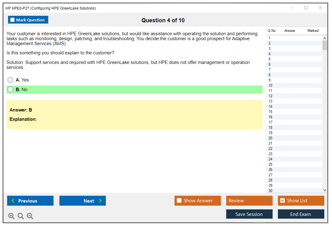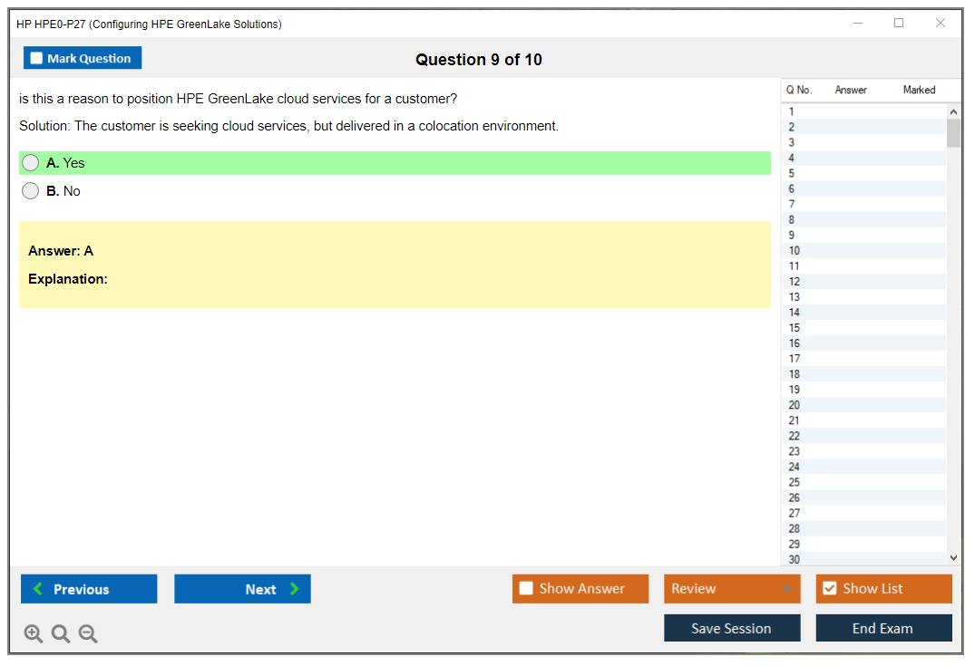 The HP HPE0-P27 (Configuring HPE GreenLake Solutions) exam tests candidates on their ability to configure and manage HPE GreenLake solutions, which are designed to provide a flexible, pay-per-use IT consumption model.
