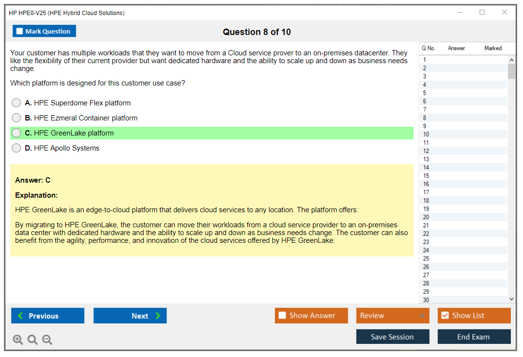 The HP HPE0-V25 (HPE Hybrid Cloud Solutions) Exam is designed to validate the knowledge and skills of IT professionals in implementing and managing hybrid cloud solutions using HPE technologies.