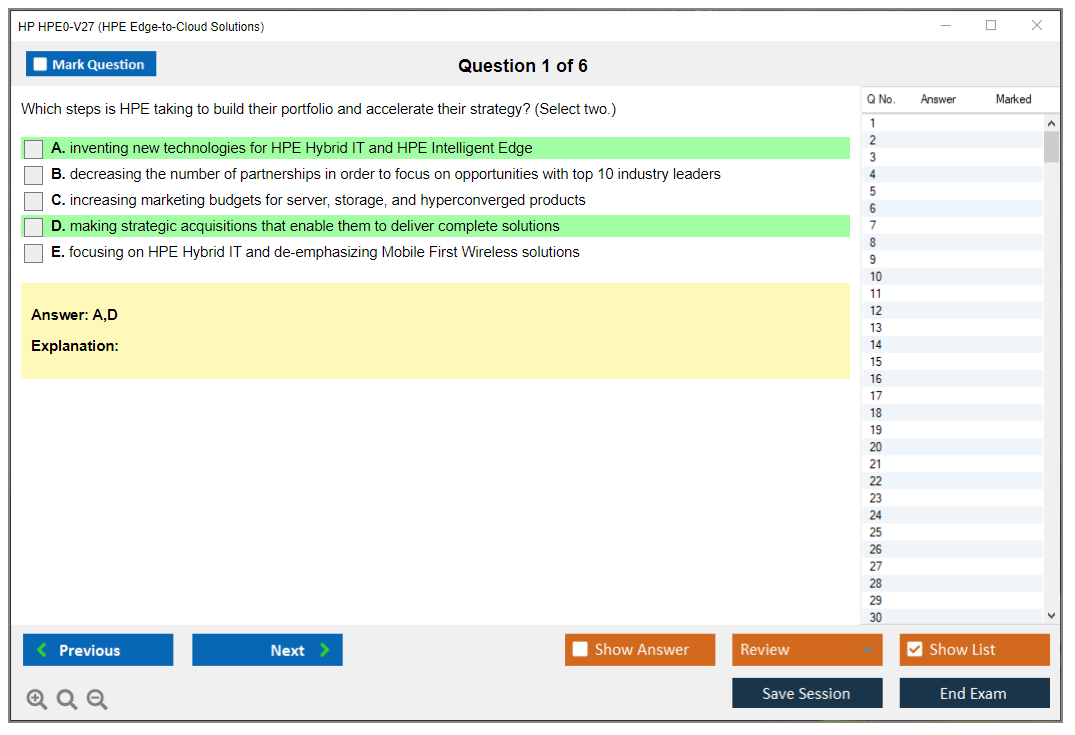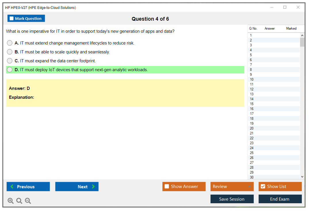 The HP HPE0-V27 (HPE Edge-to-Cloud Solutions) Exam is designed to validate the knowledge and skills of professionals in implementing and managing HPE edge-to-cloud solutions. It focuses on HPE's edge-to-cloud strategy and the technologies that support it.