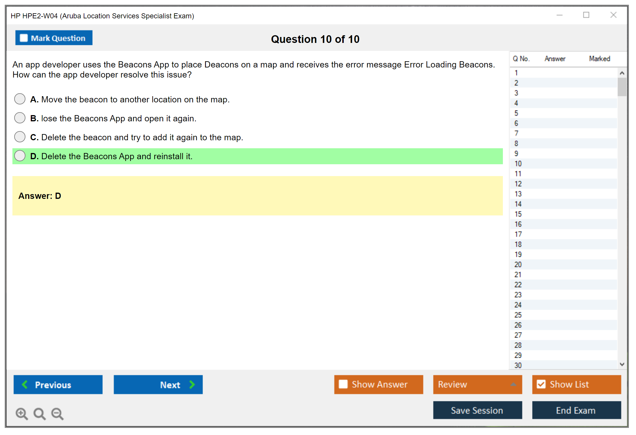 The HP HPE2-W04 (Aruba Location Services Specialist Exam) is designed to validate the skills and knowledge of IT professionals in implementing and managing Aruba Location Services solutions.