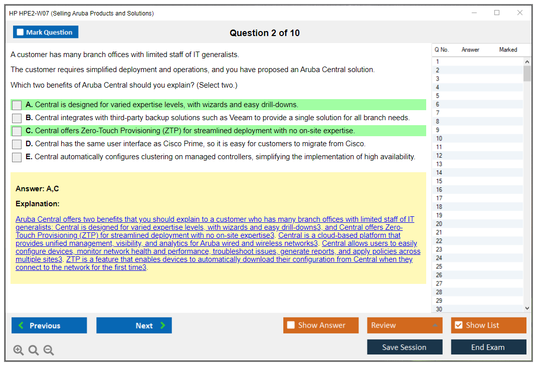 What are the Sample Questions of HP HPE2-W07 Exam?