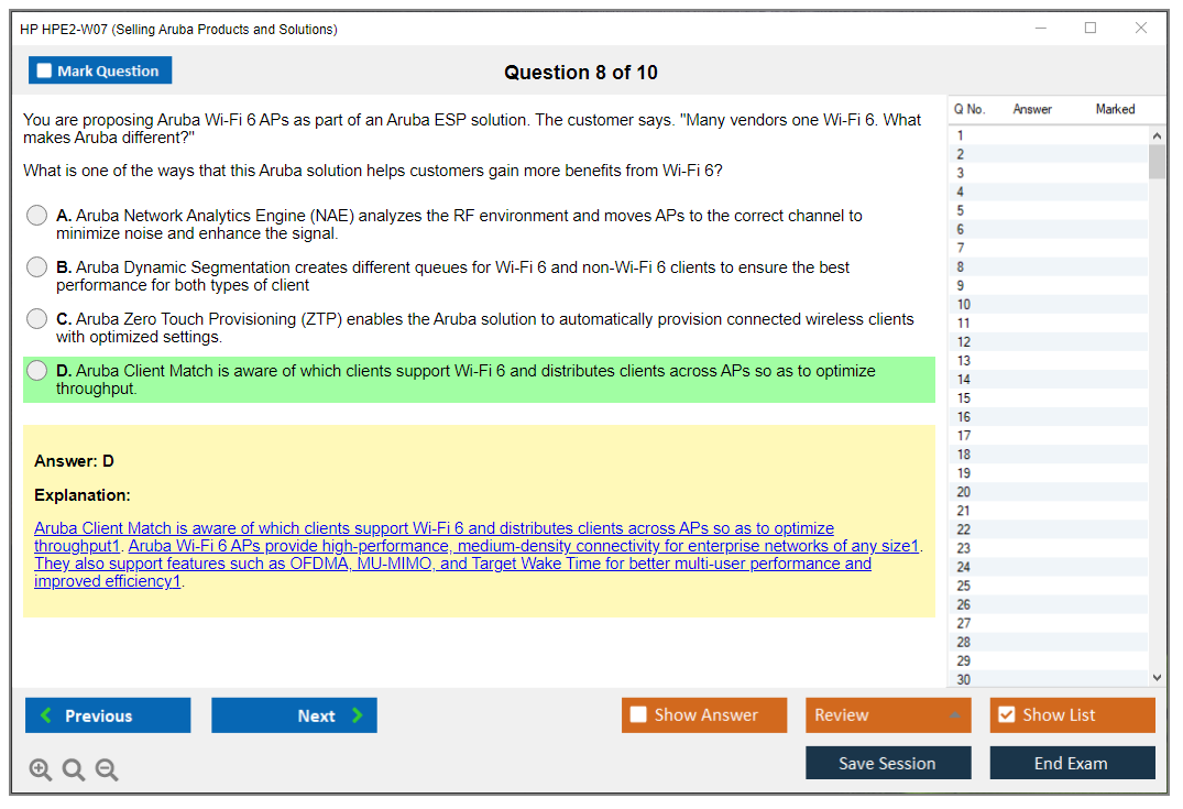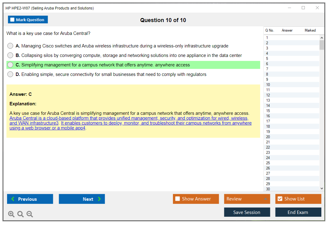 The HP HPE2-W07 exam focuses on assessing the candidate's ability to understand and sell Aruba's networking solutions. It covers various aspects of Aruba products, including their features, benefits, and how they meet customer needs.