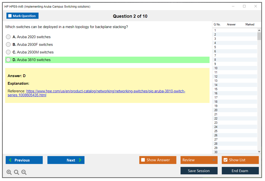 Note: HP HPE6-A45 (Implementing Aruba Campus Switching solutions) will not receive any new updates.