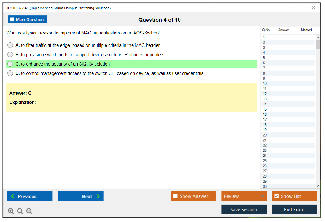 The HP HPE6-A45 exam is a certification test for IT professionals who want to demonstrate their expertise in implementing Aruba Campus Switching solutions. It covers a wide range of topics, including network design, configuration, troubleshooting, and security.