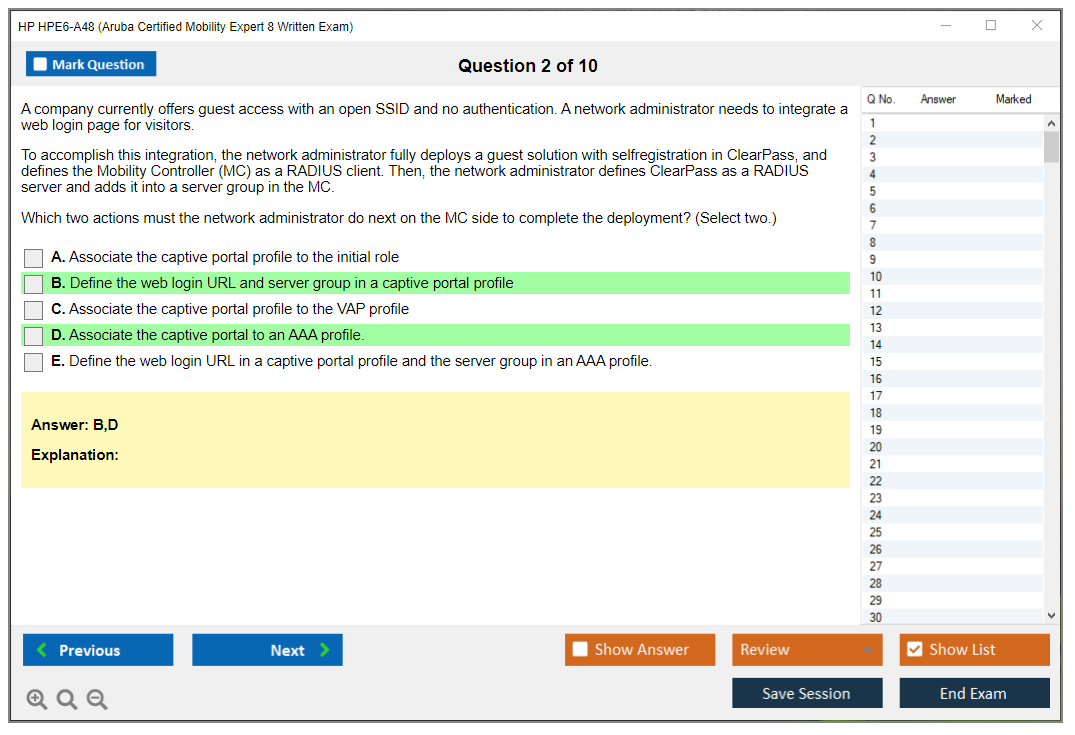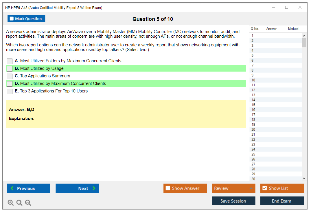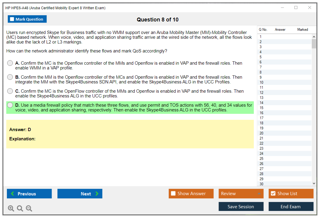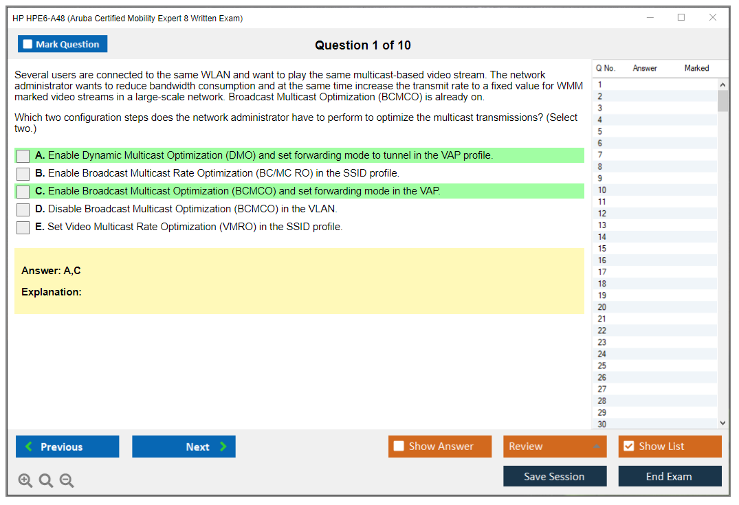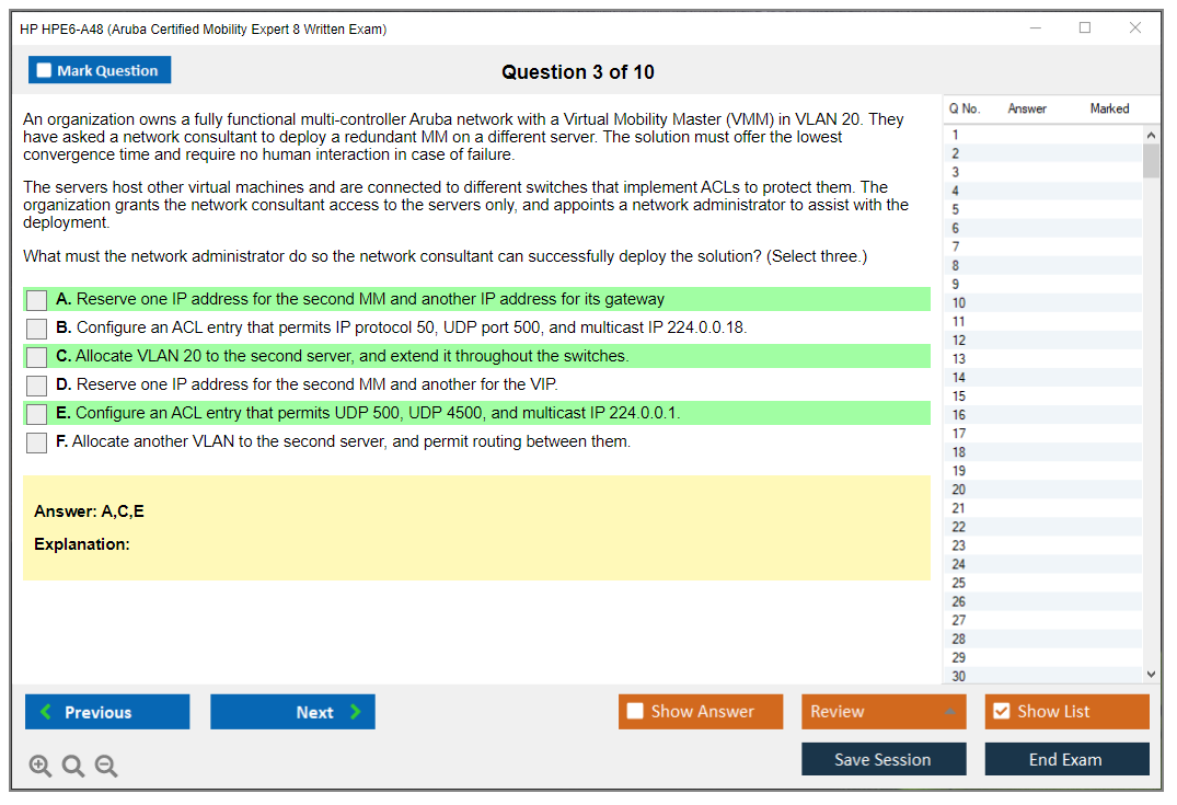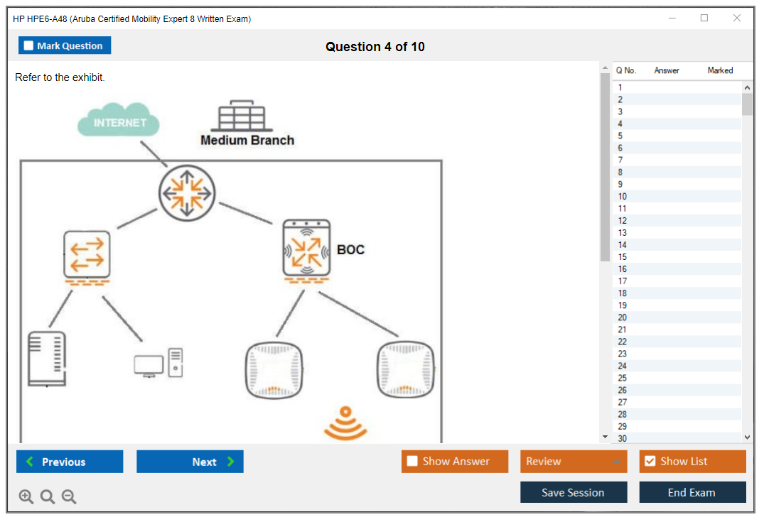 The HP HPE6-A48 (Aruba Certified Mobility Expert 8 Written Exam) is a certification exam designed to validate the knowledge and skills required to design, implement, and manage advanced Aruba Wireless Local Area Network (WLAN) solutions.