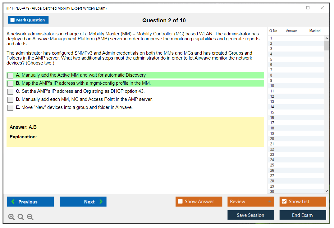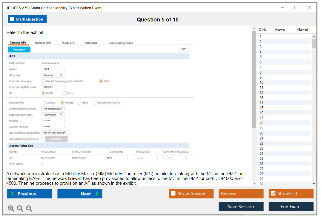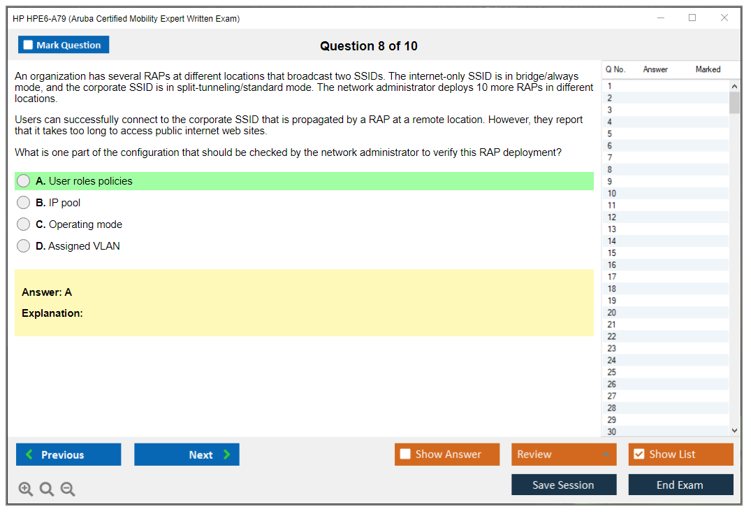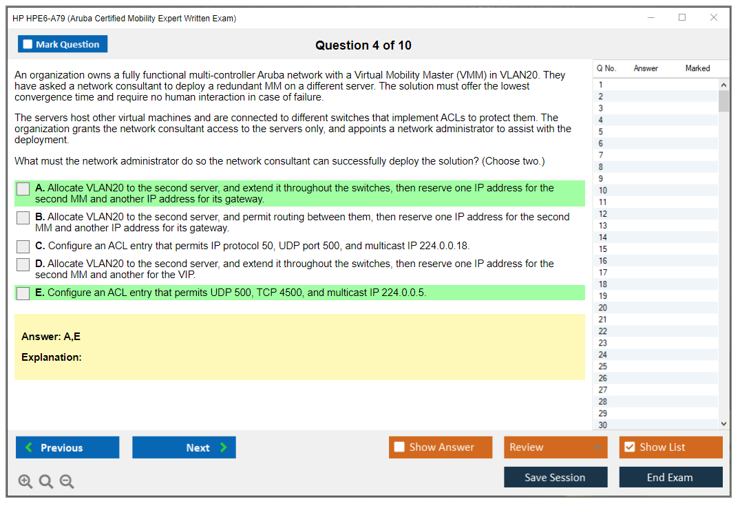 The HP HPE6-A79 exam, also known as the Aruba Certified Mobility Expert Written Exam, is designed to validate the skills and knowledge of candidates in advanced topics related to Aruba Mobility solutions. This certification is aimed at IT professionals who are responsible for the design, implementation, and management of complex mobile and wireless network solutions using Aruba products and technologies.