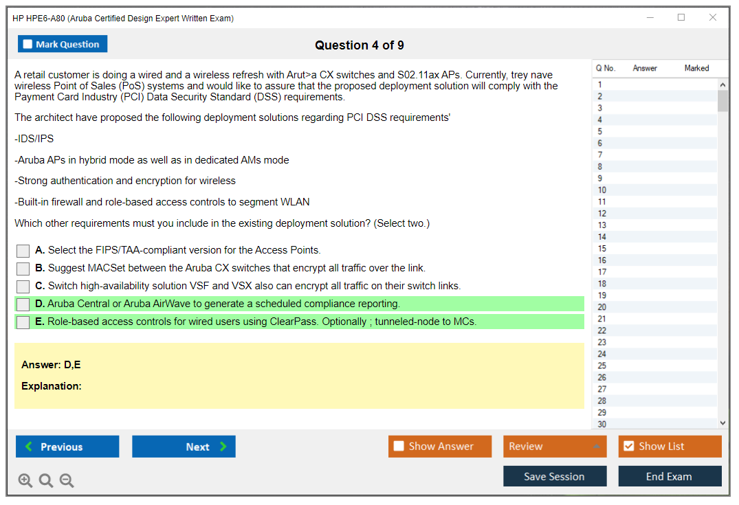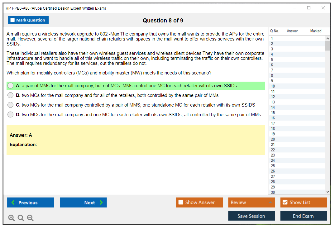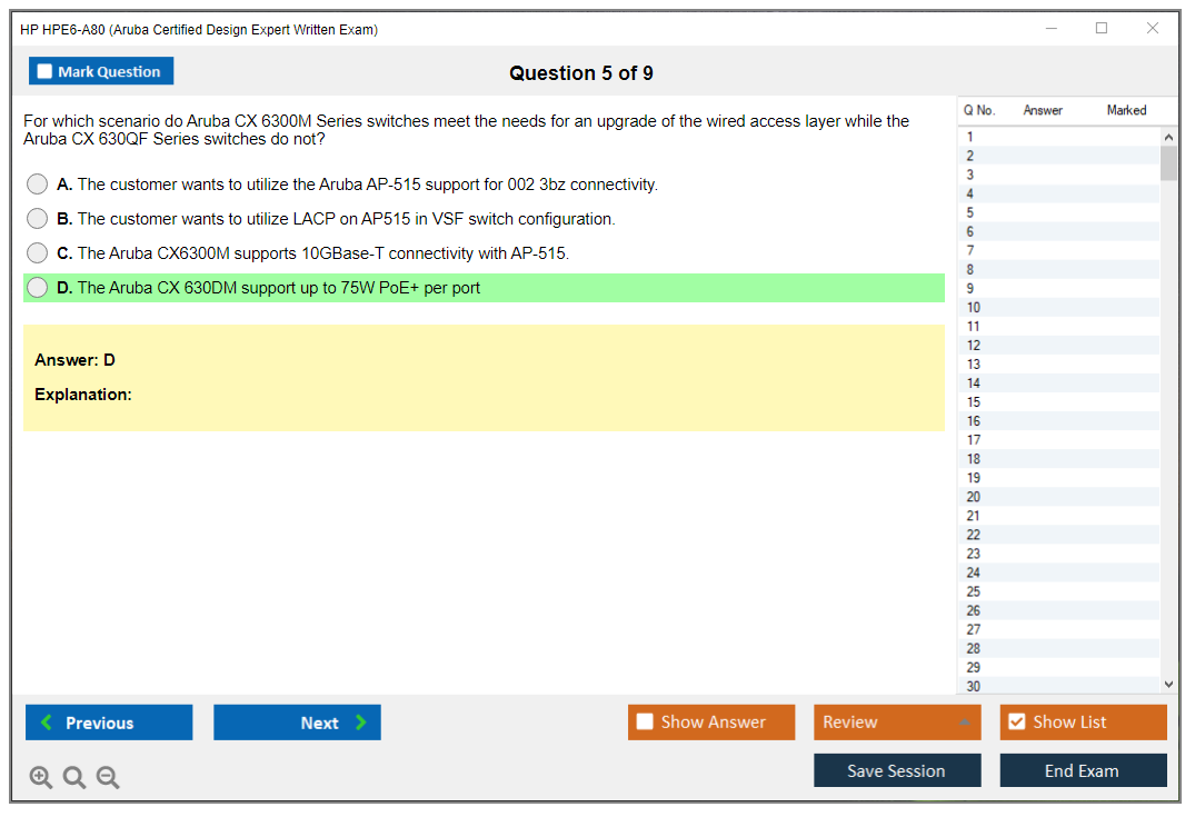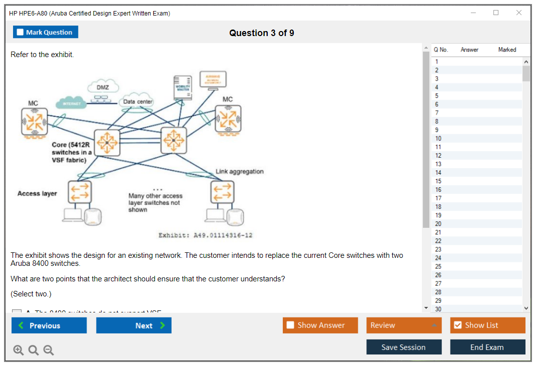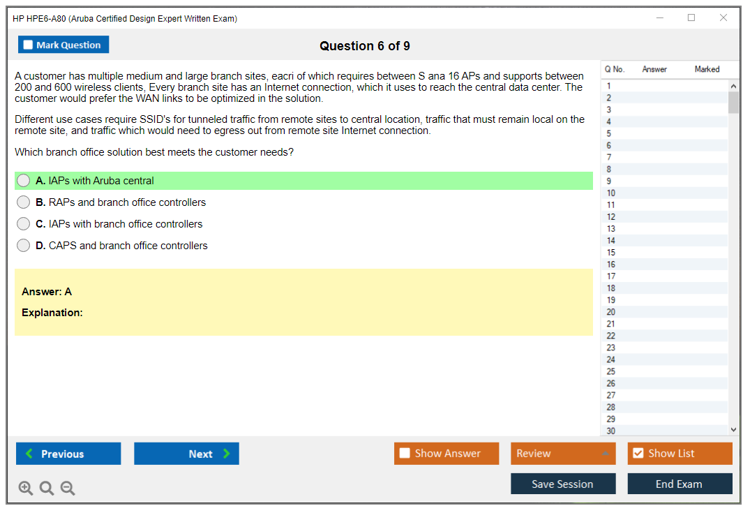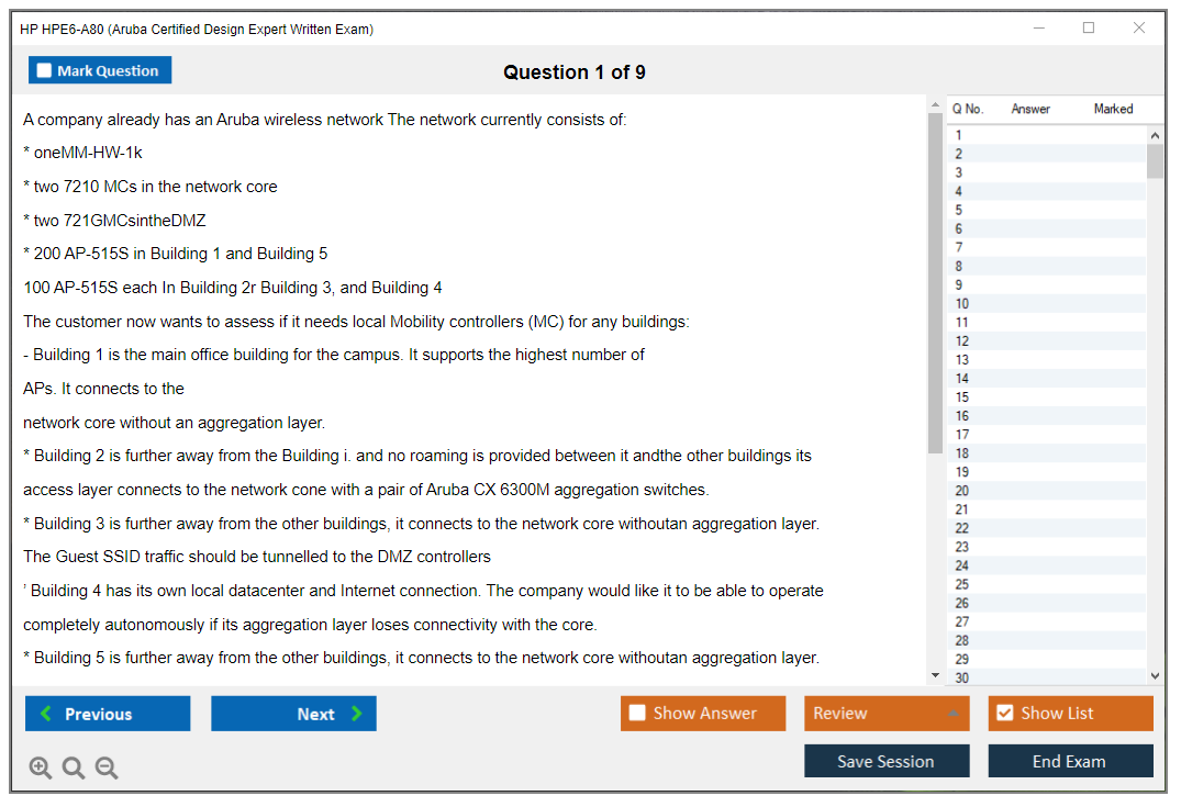 The HP HPE6-A80 (Aruba Certified Design Expert Written Exam) is a certification exam designed to validate the skills and knowledge of IT professionals in designing complex, enterprise-level Aruba wireless and wired network solutions.