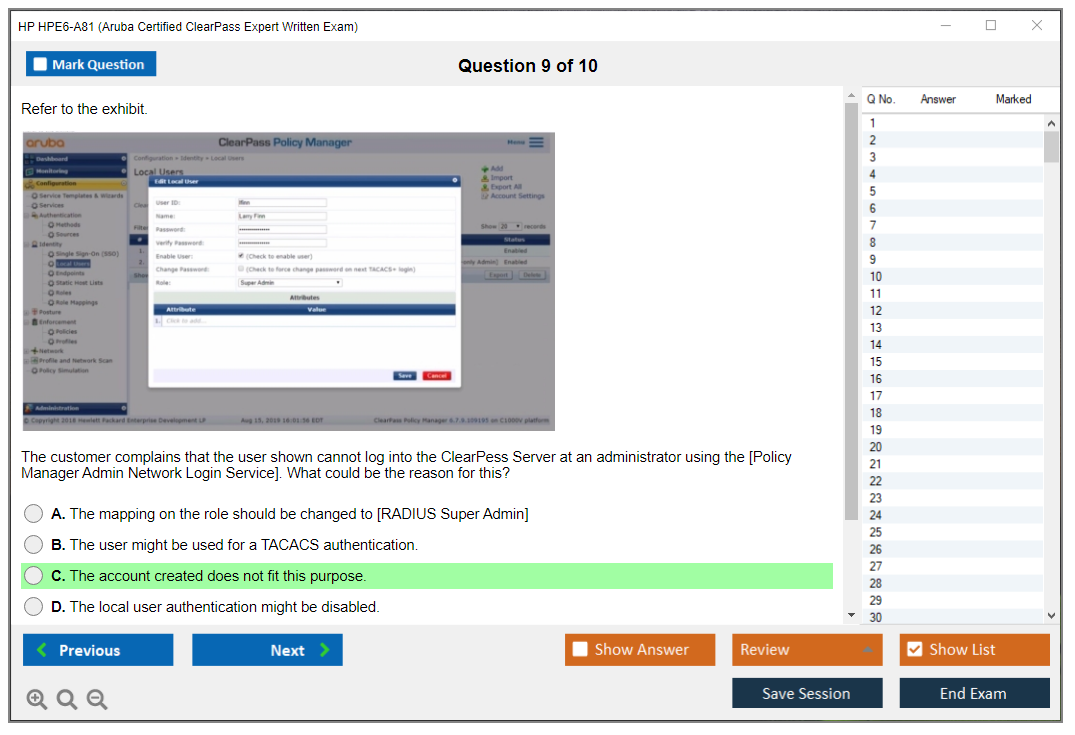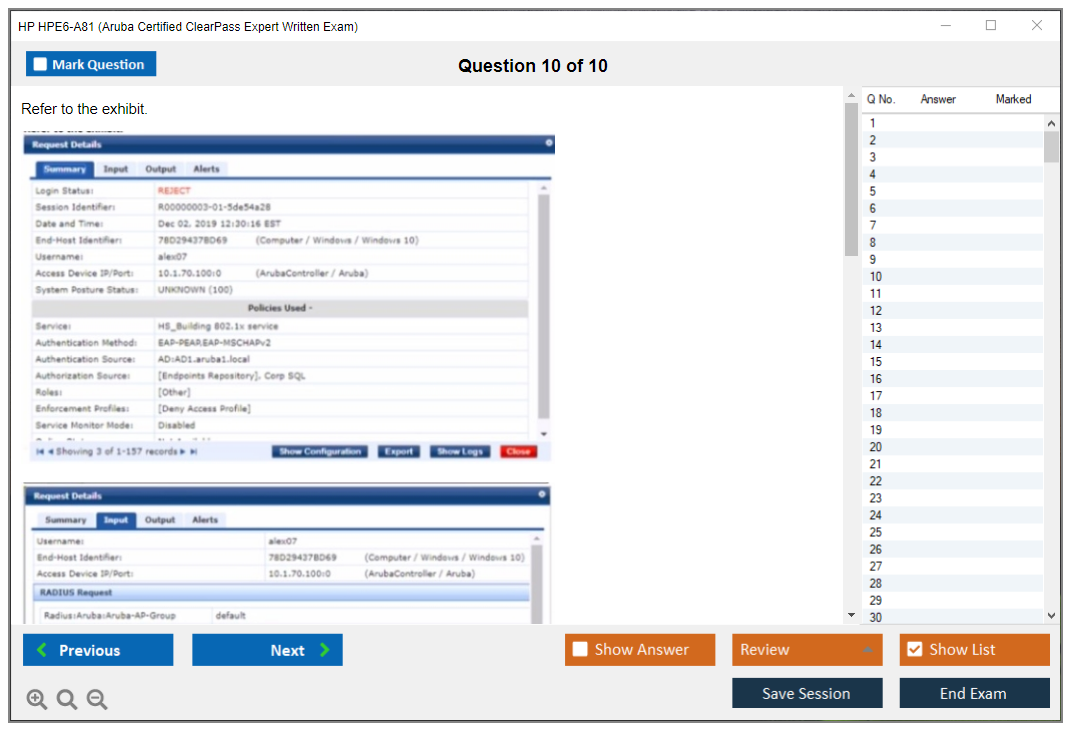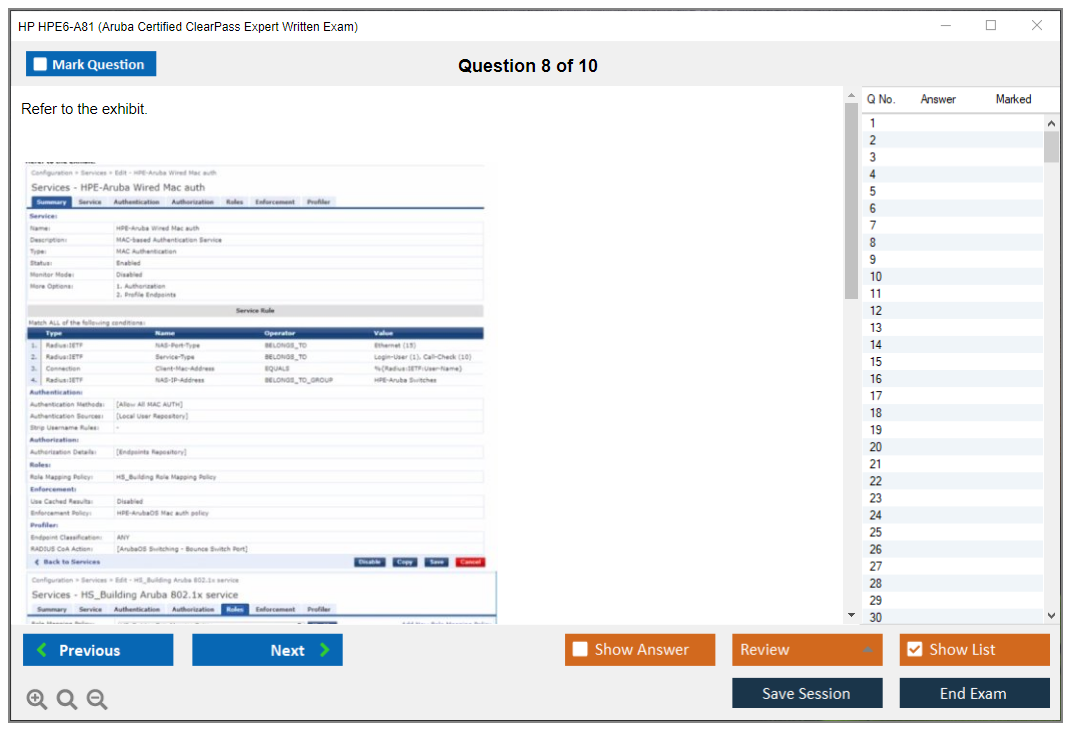 The HP HPE6-A81 exam tests an individual's expertise in designing, deploying, and troubleshooting Aruba ClearPass solutions. It includes scenarios and questions that assess both theoretical knowledge and practical skills.