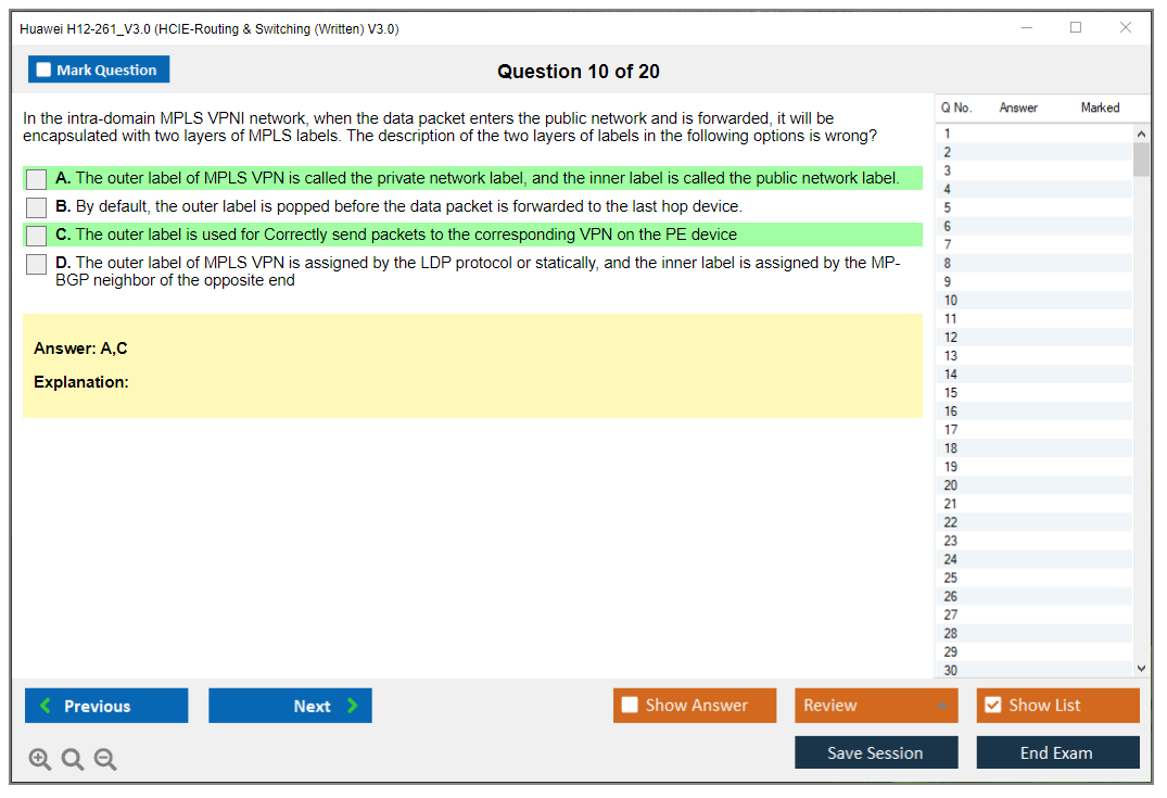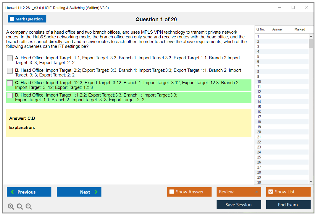 The Huawei H12-261_V3.0 (HCIE-Routing & Switching (Written) V3.0) exam is a certification exam designed to validate the advanced knowledge and skills of professionals in routing and switching technologies. It is part of the Huawei Certified Internetwork Expert (HCIE) certification track.