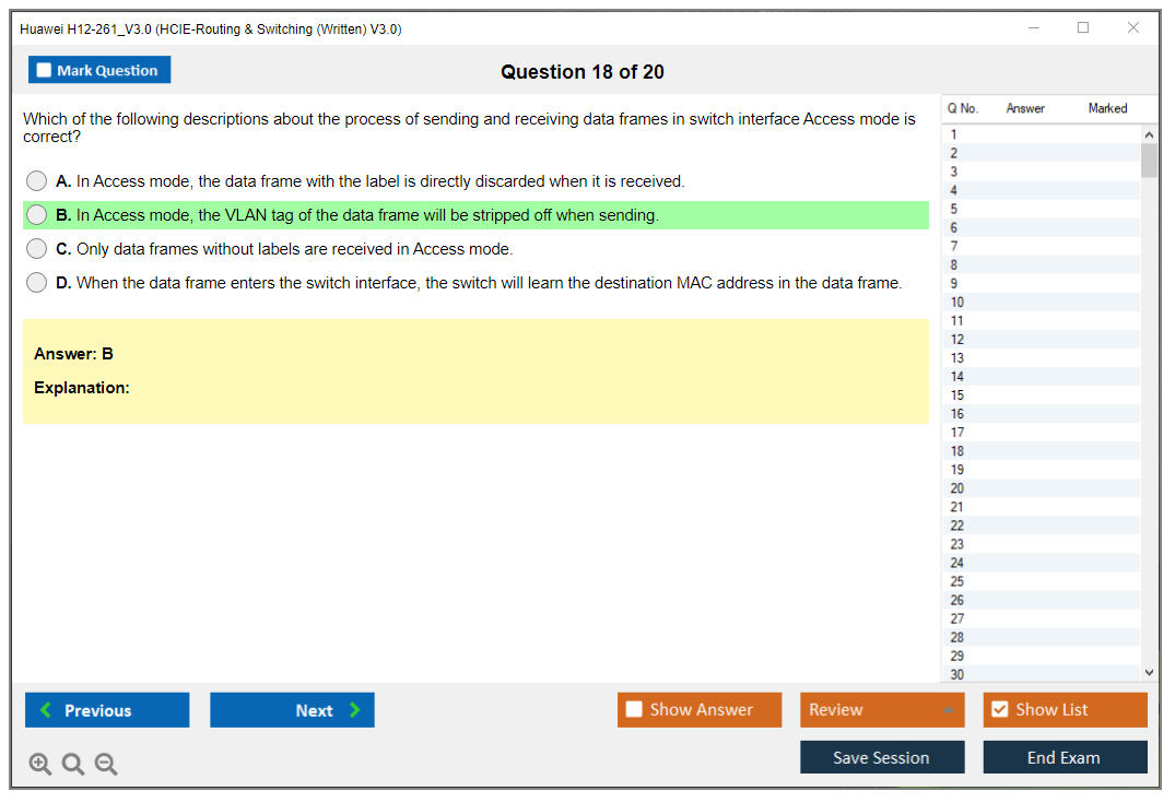 What are the Sample Questions of Huawei H12-261_V3.0 Exam?