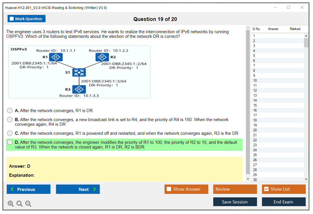 Note: Huawei H12-261_V3.0 (HCIE-Routing & Switching (Written) V3.0) will not receive any new updates.