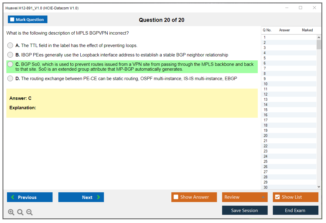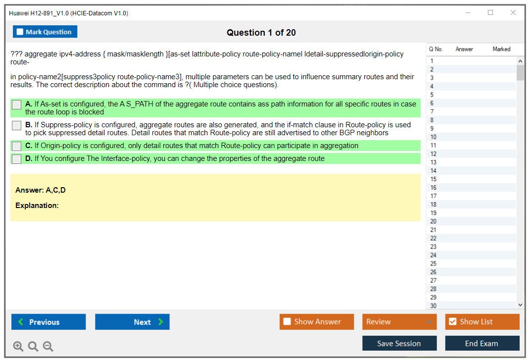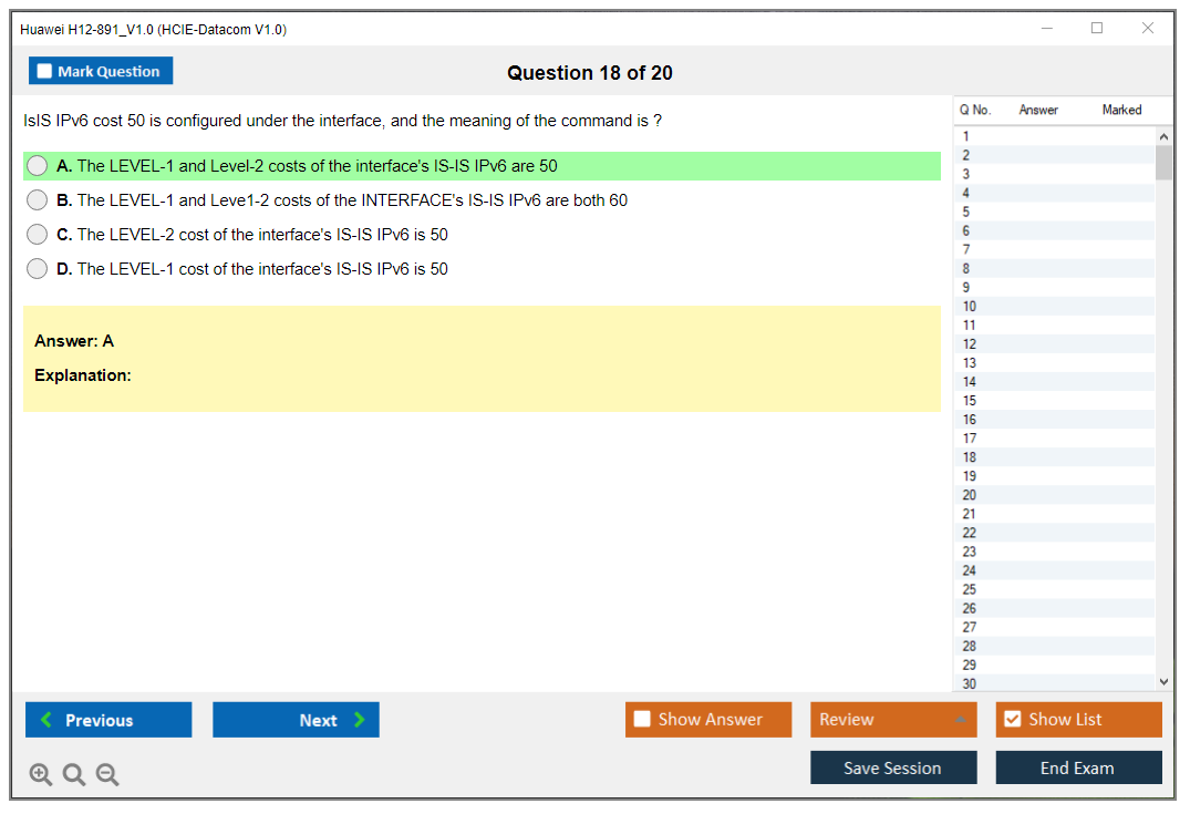 The Huawei H12-891_V1.0 Exam, also known as HCIE-Datacom V1.0, is aimed at professionals looking to demonstrate their expertise in data communication networks. This exam tests candidates on various aspects of network technologies, including routing, switching, network security, and network management.