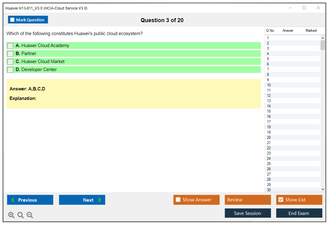 The Huawei H13-811_V3.0 Exam, also known as HCIA-Cloud Service V3.0, is a certification exam offered by Huawei to test the competency of candidates in cloud service technologies. It is aimed at professionals who want to validate their skills and knowledge in this domain.