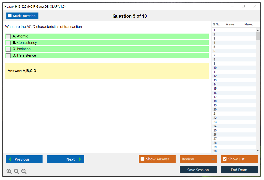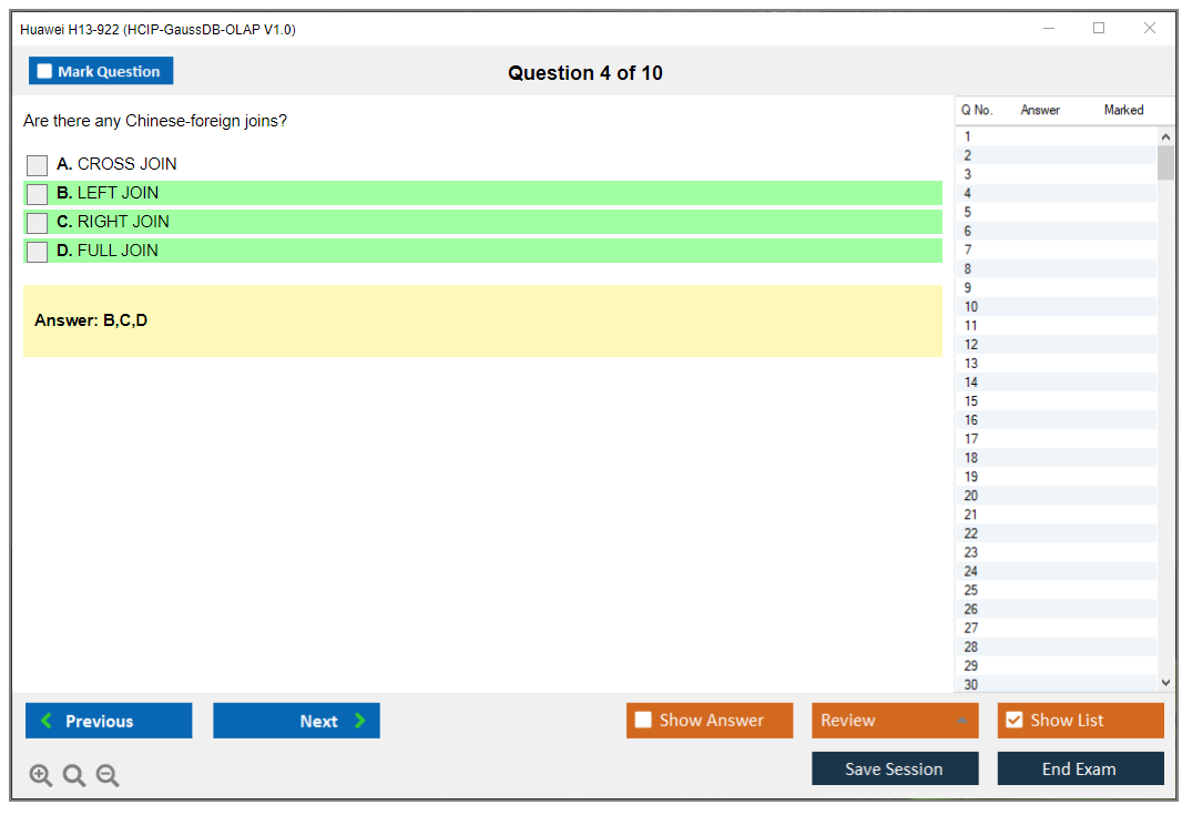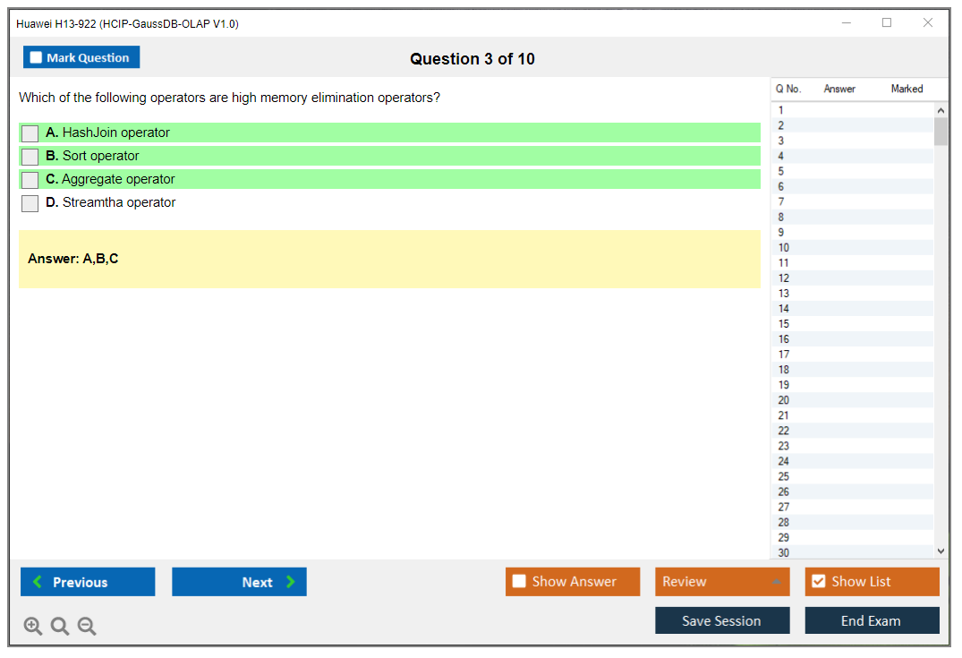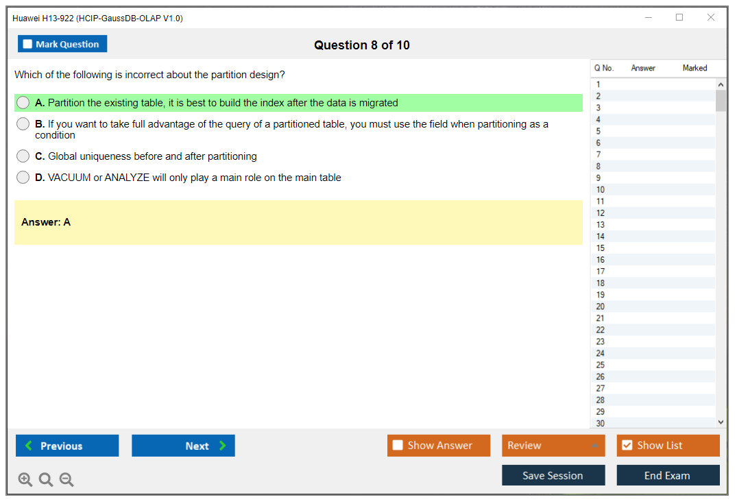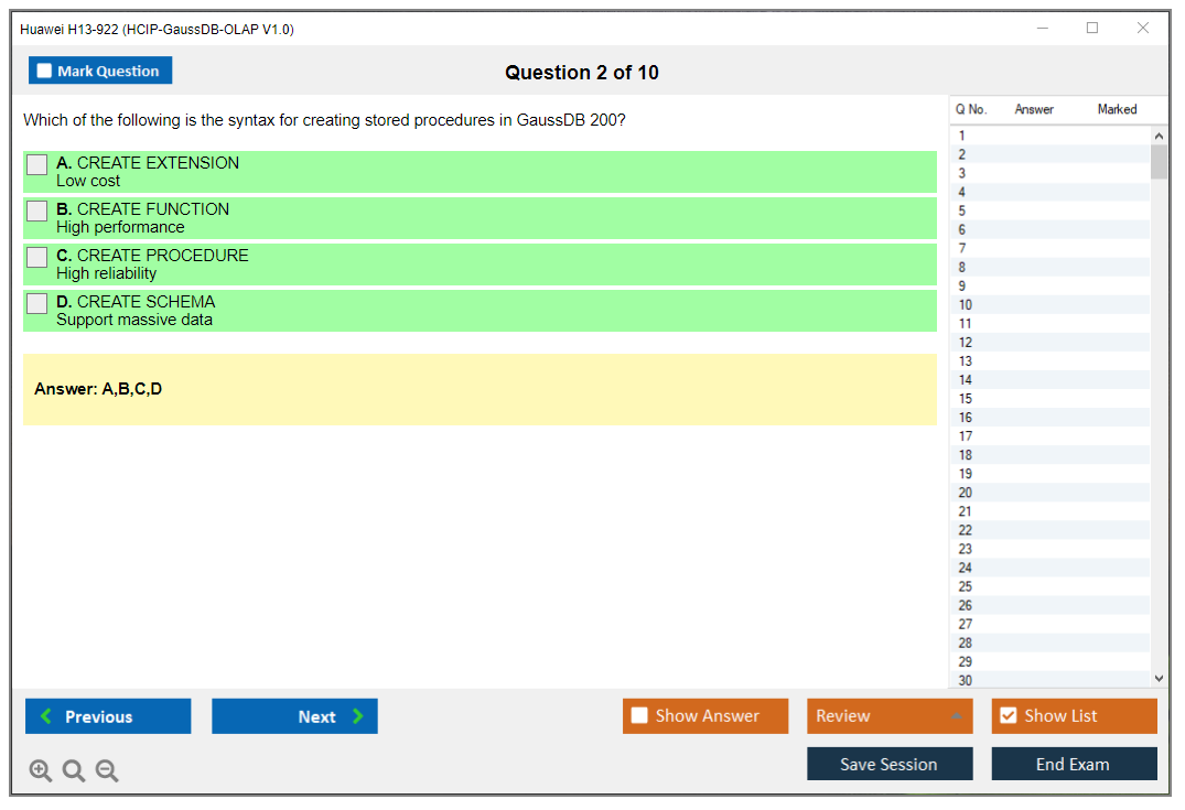 H13-922 (HCIP-GaussDB-OLAP V1.0) PDF + Test Engine