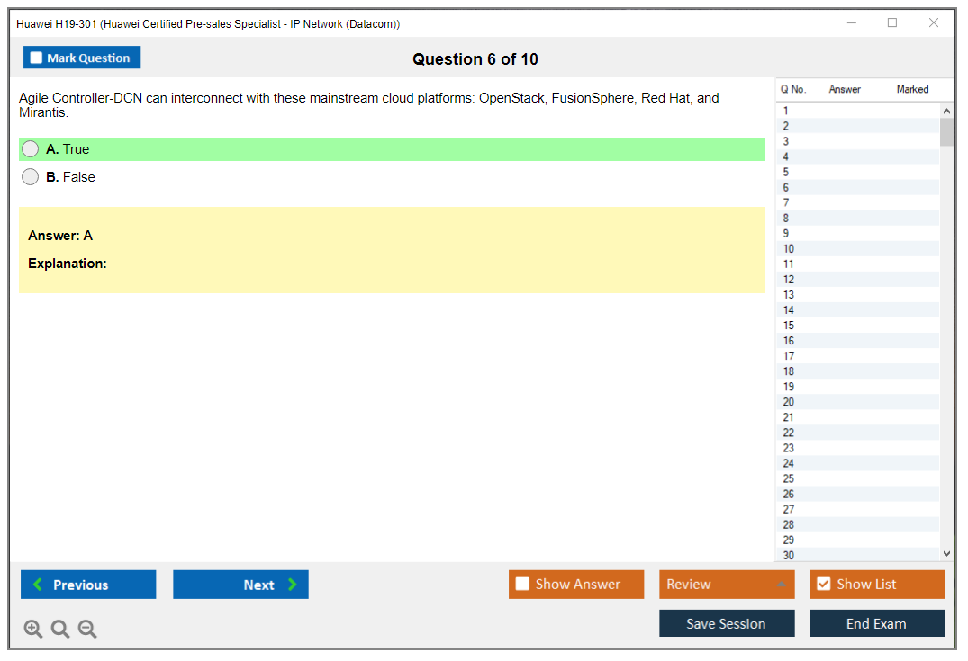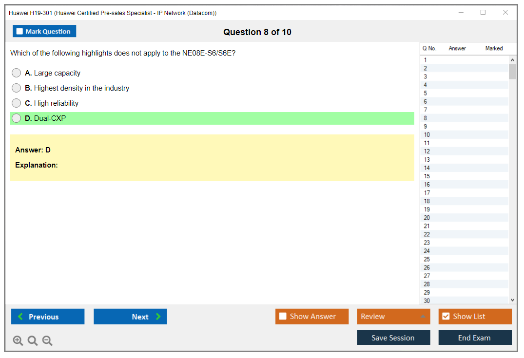 The question format of the Huawei H19-301 Exam includes multiple-choice questions, multiple response questions, and drag-and-drop questions.