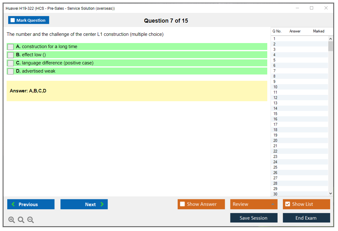 The question format of the Huawei H19-322 Exam includes multiple-choice questions, multiple-answer questions, and scenario-based questions.
