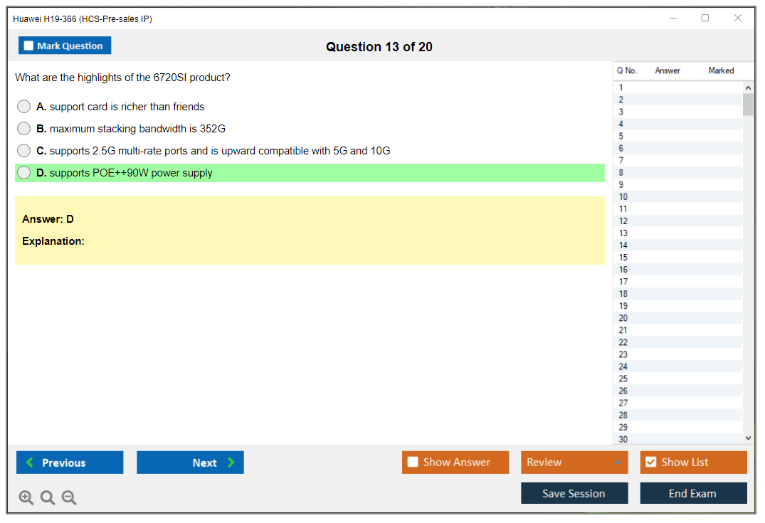 The question format of the Huawei H19-366 Exam includes multiple-choice questions, drag-and-drop questions, and scenario-based questions.