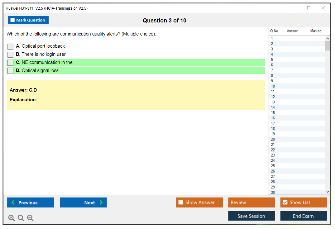 The Huawei H31-311_V2.5 Exam is part of the HCIA-Transmission certification, which validates the candidate's understanding and ability to manage transmission networks. It covers various aspects of transmission technology, including network structure, equipment, and troubleshooting.
