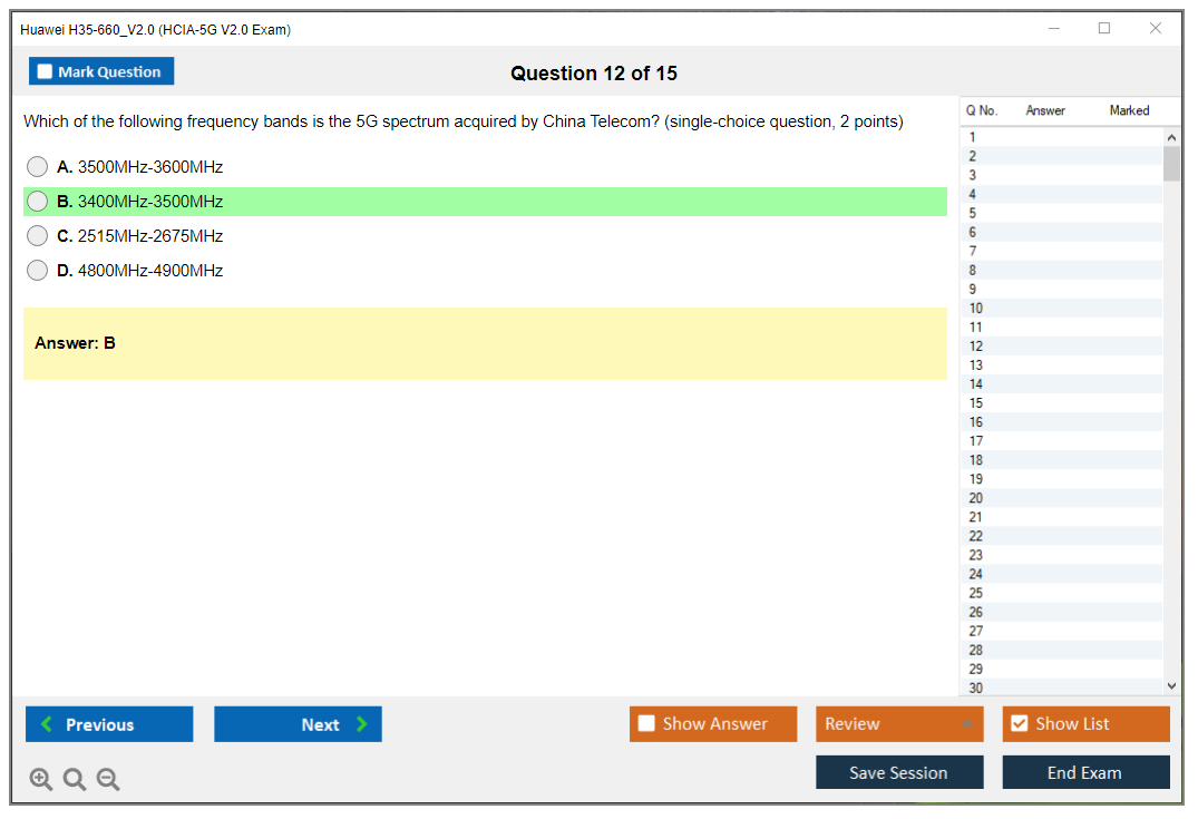 The Huawei H35-660_V2.0 (HCIA-5G V2.0 Exam) is designed to test the knowledge and skills of candidates in the field of 5G technology. It covers various aspects of 5G networks, including architecture, key technologies, and application scenarios.