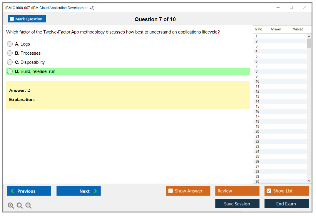 The IBM C1000-007 (IBM Cloud Application Development v3) exam is designed to validate the skills and knowledge of professionals in developing applications on the IBM Cloud platform. It focuses on various cloud technologies, services, and best practices for cloud application development.
