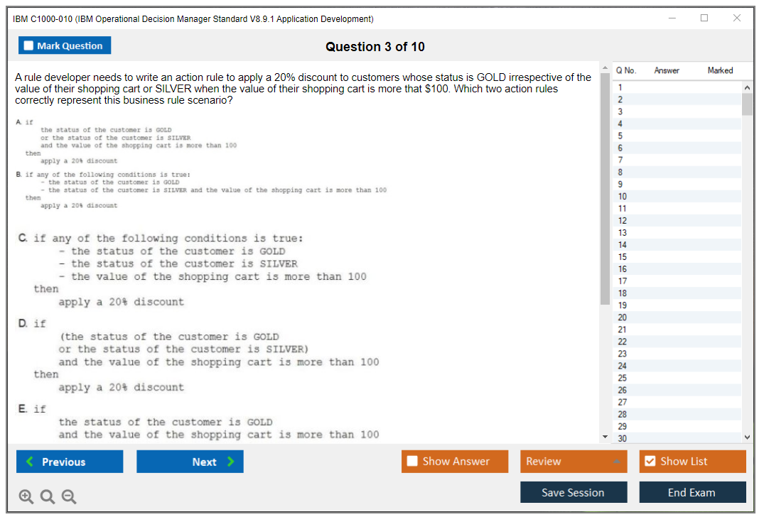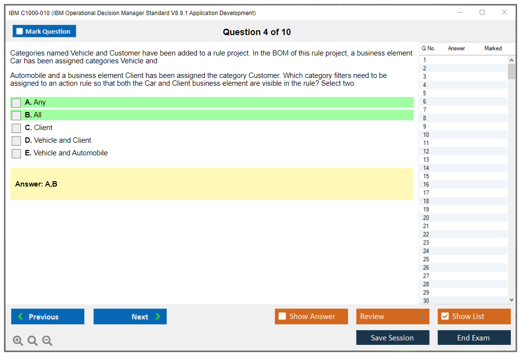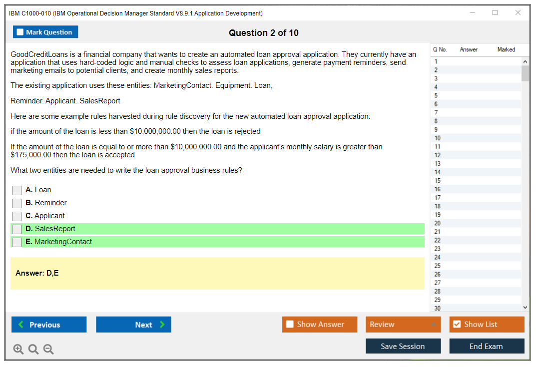 C1000-010 (IBM Operational Decision Manager Standard V8.9.1 Application Development) PDF + Test Engine
