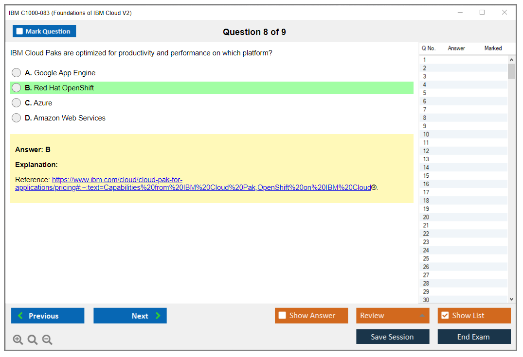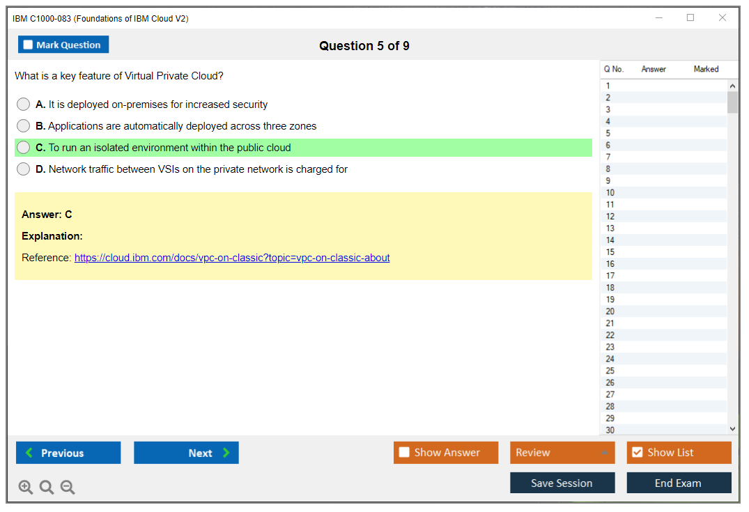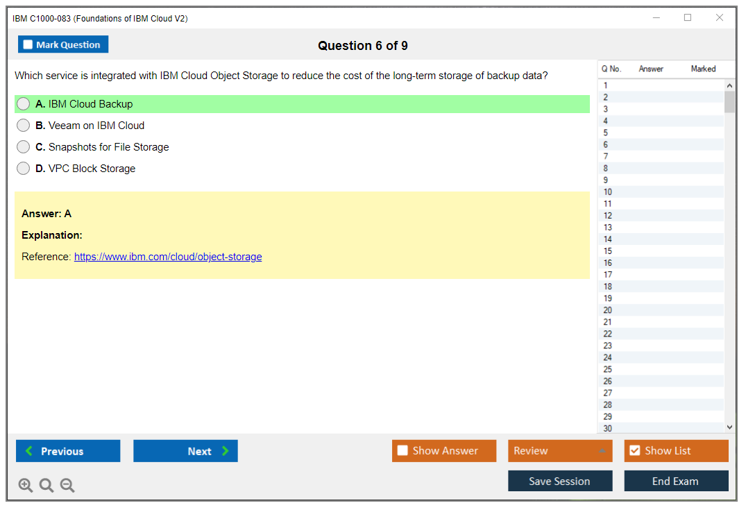 The C1000-083 - Foundations of IBM Cloud V2 study guide from DumpsBoss is exceptional! It covered all the essential topics thoroughly and provided me with the tools I needed to succeed. A must-have for anyone taking the exam.