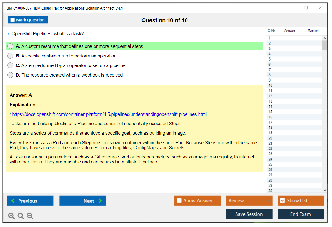 C1000-087 (IBM Cloud Pak for Applications Solution Architect V4.1) PDF + Test Engine
