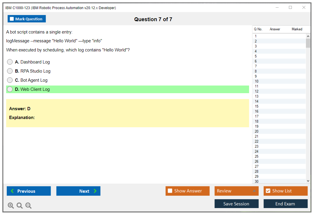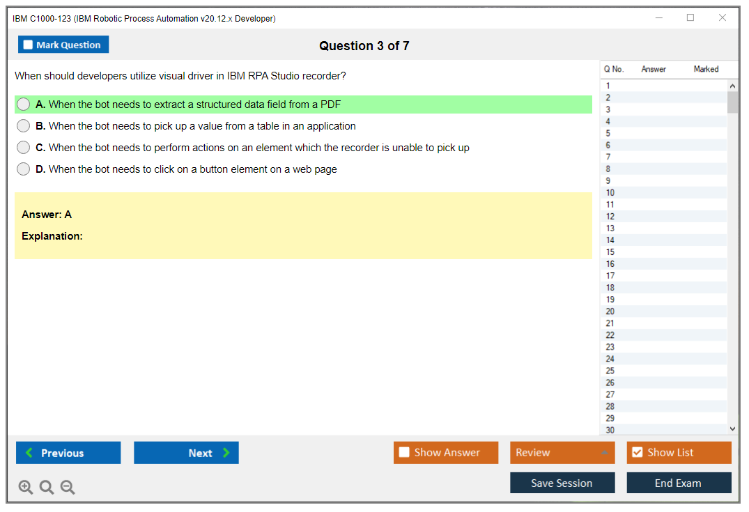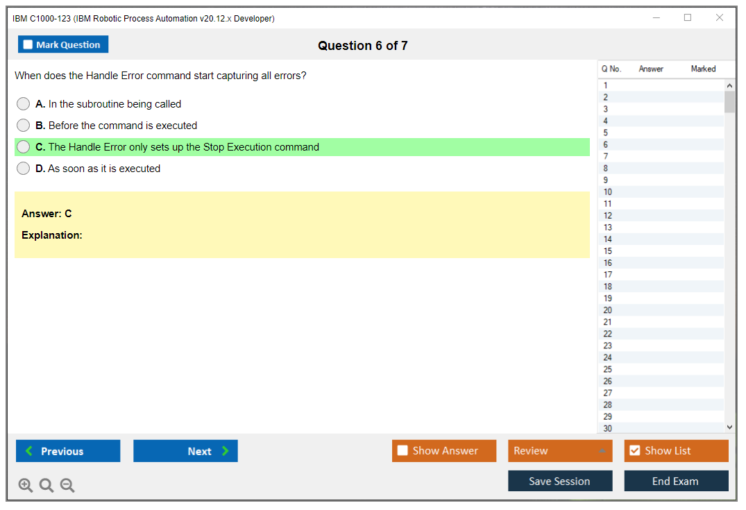 The IBM C1000-123 (IBM Robotic Process Automation v20.12.x Developer) Exam is designed to validate the skills and knowledge of individuals in developing and implementing robotic process automation solutions using IBM's RPA technology.