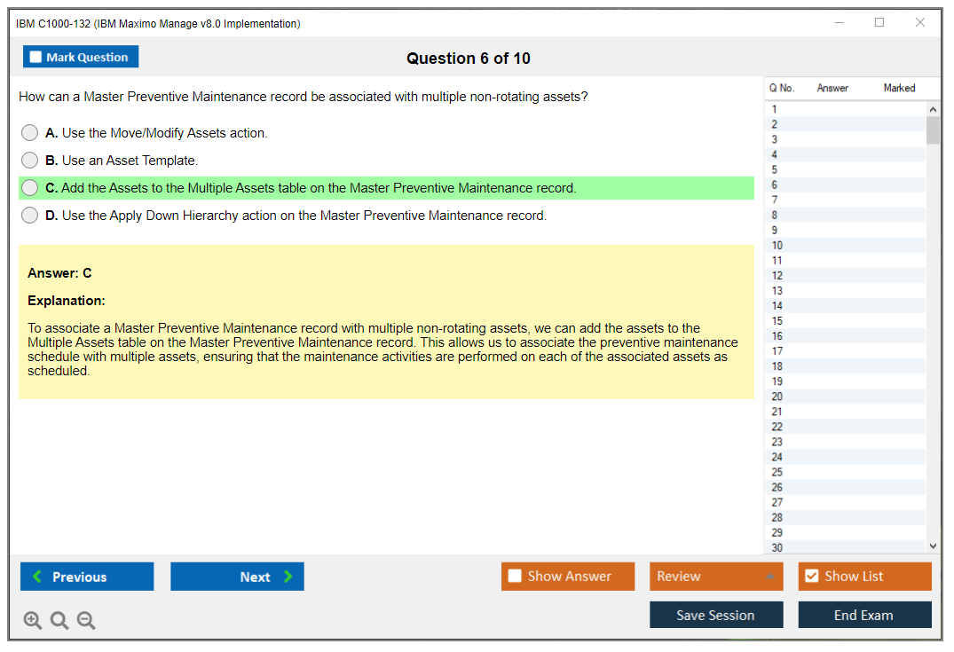The IBM C1000-132 (IBM Maximo Manage v8.0 Implementation) Exam is designed to validate the skills and knowledge of professionals in implementing IBM Maximo Manage v8.0. This certification demonstrates the ability to effectively deploy and manage the Maximo Manage solution.