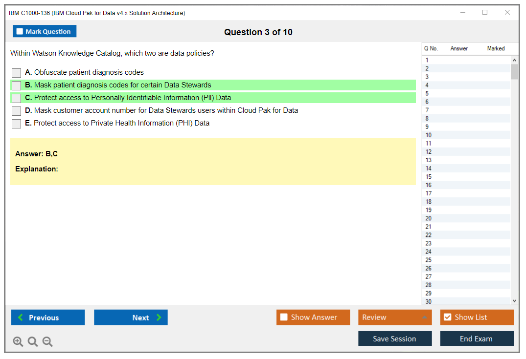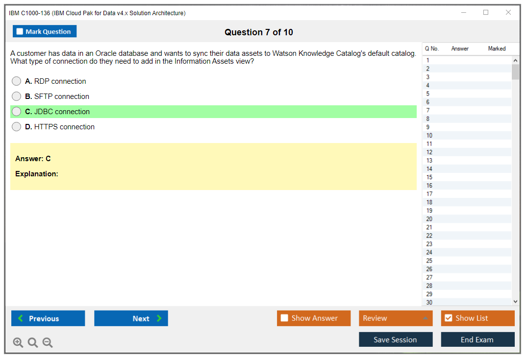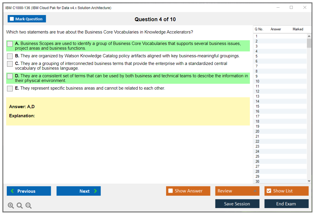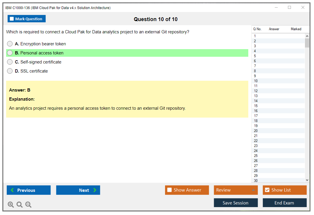 The IBM C1000-136 (IBM Cloud Pak for Data v4.x Solution Architecture) Exam is designed to validate the skills and knowledge of professionals working with IBM Cloud Pak for Data. It assesses the ability to design, plan, and manage IBM Cloud Pak for Data solutions.