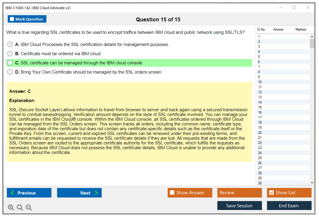 The IBM C1000-142 (IBM Cloud Advocate v2) Exam is designed to validate the skills and knowledge of individuals in the IBM Cloud environment. It covers various facets of IBM Cloud including architecture, services, and solutions.