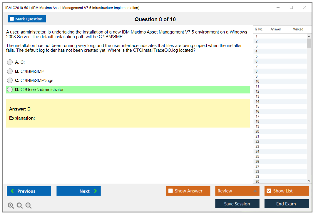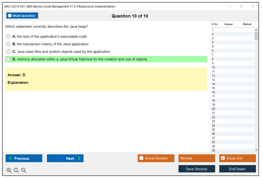 Note: IBM C2010-501 (IBM Maximo Asset Management V7.5 Infrastructure Implementation) will not receive any new updates.