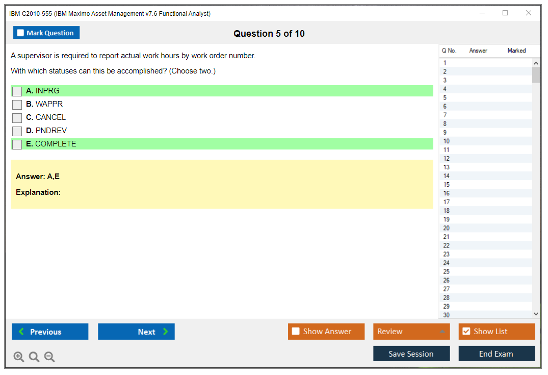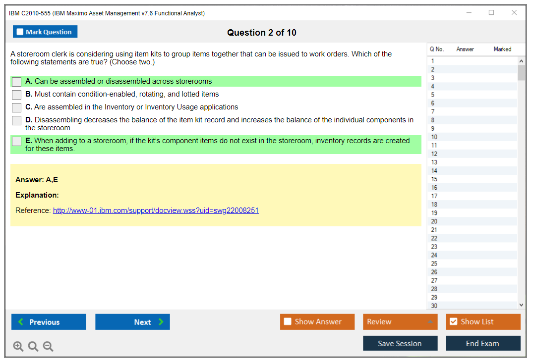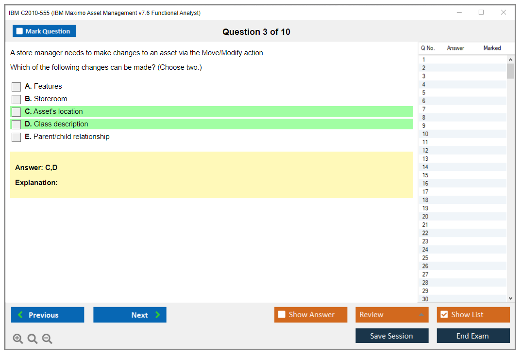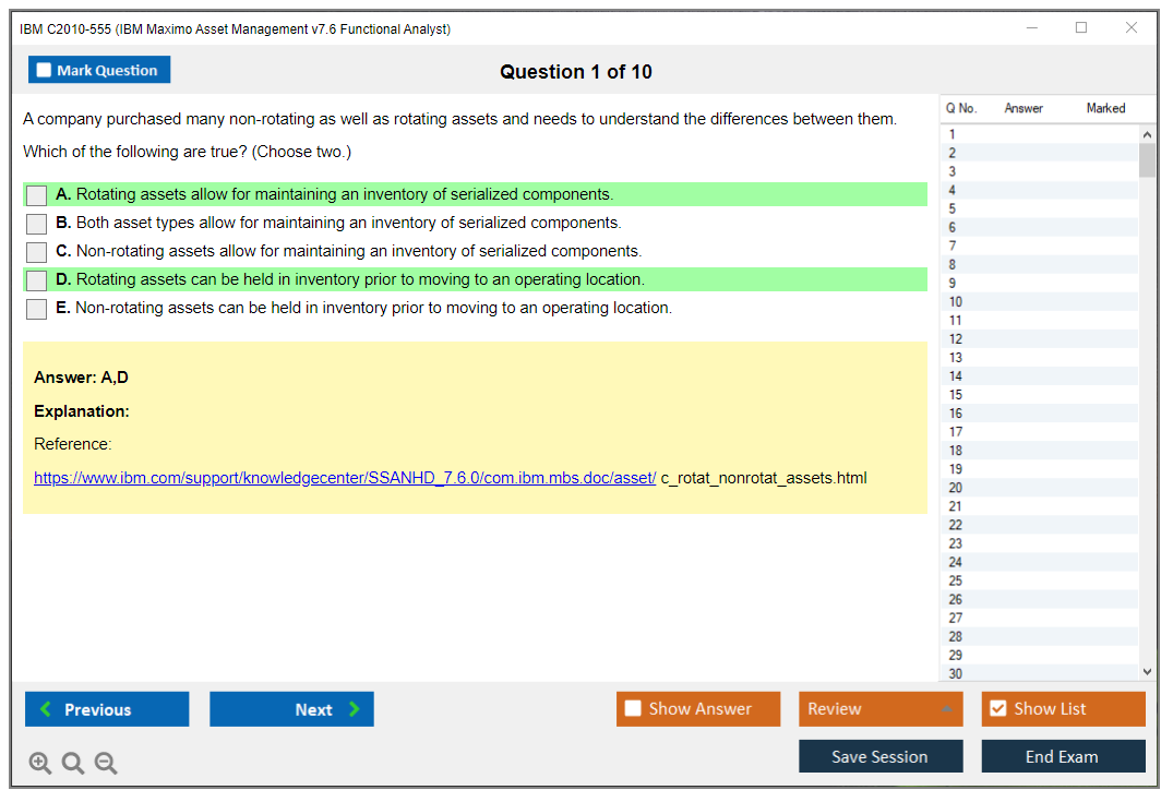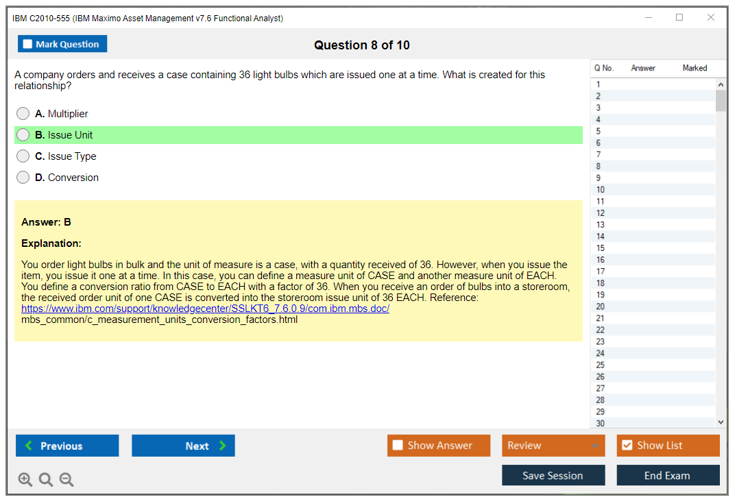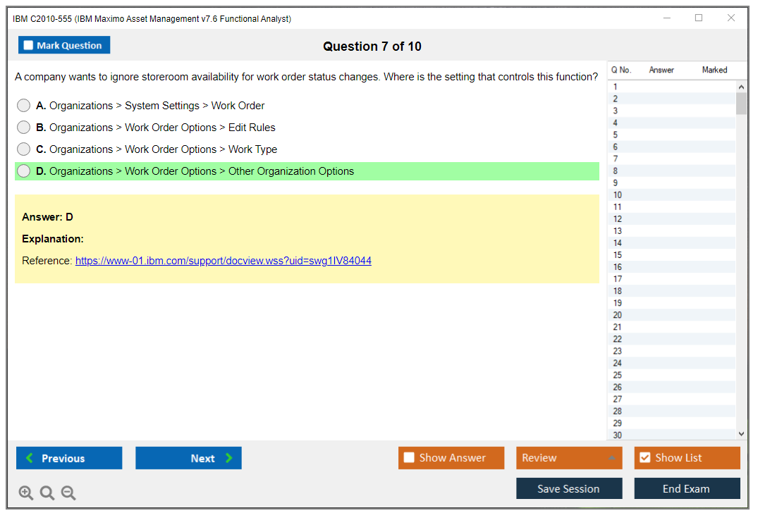 The IBM C2010-555 (IBM Maximo Asset Management v7.6 Functional Analyst) exam is designed to validate the skills and knowledge of professionals in configuring and using IBM Maximo Asset Management v7.6. It covers various aspects of asset management, including work management, inventory, procurement, and preventive maintenance.