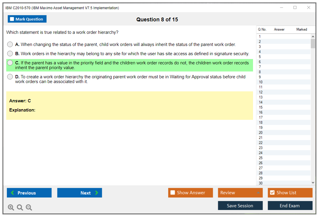 The IBM C2010-570 (IBM Maximo Asset Management V7.5 Implementation) Exam is designed to validate the skills and knowledge of professionals in implementing IBM Maximo Asset Management V7.5 solutions.