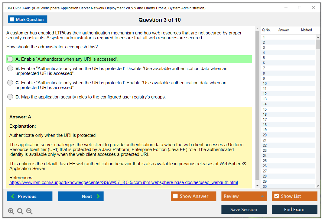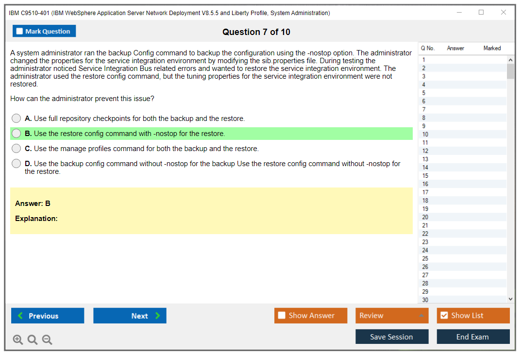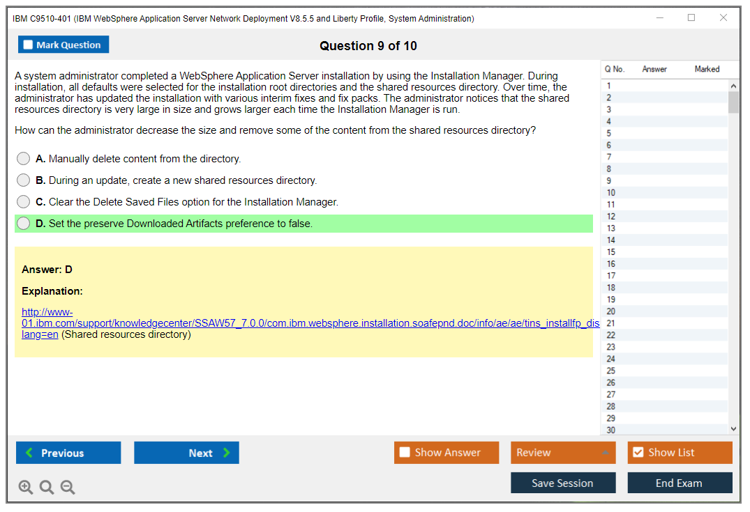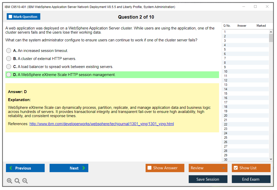 The IBM C9510-401 exam, also known as the IBM WebSphere Application Server Network Deployment V8.5.5 and Liberty Profile System Administration exam, assesses a candidate's skills in managing and configuring IBM WebSphere Application Server environments. This includes knowledge of installation, configuration, and maintenance of the server, as well as troubleshooting and performance tuning.