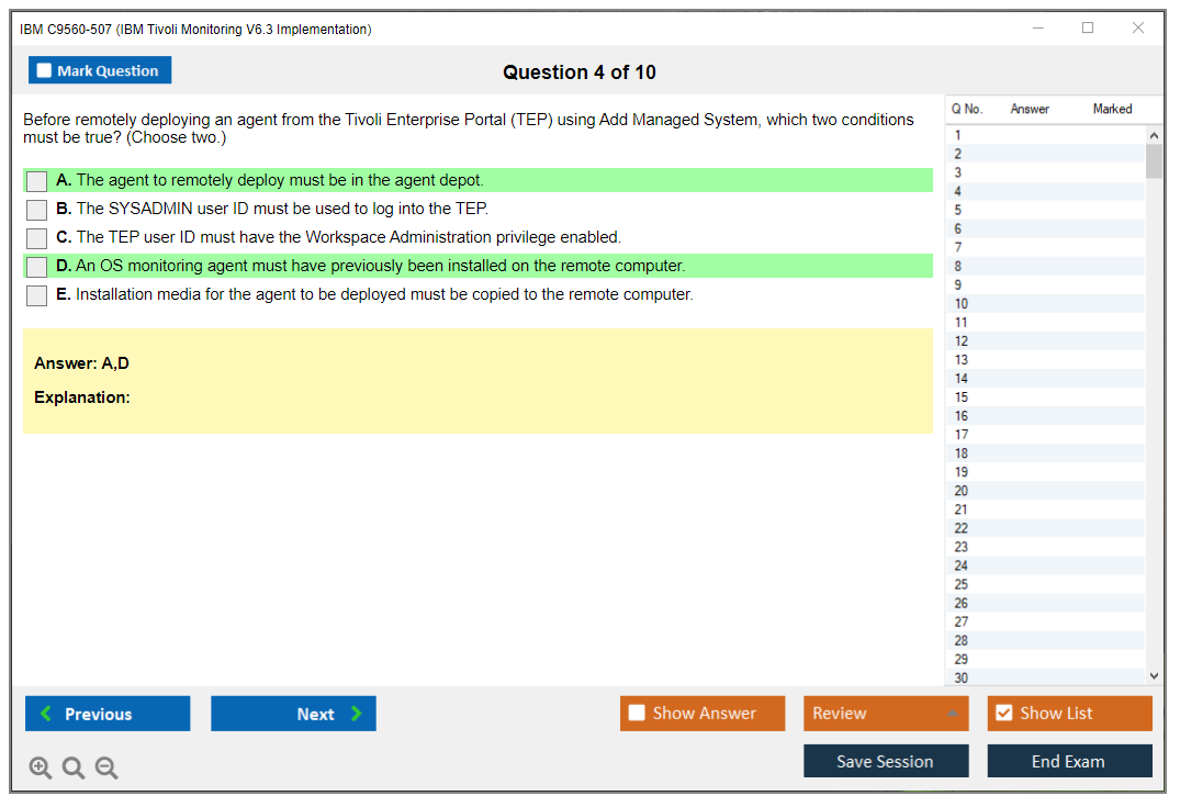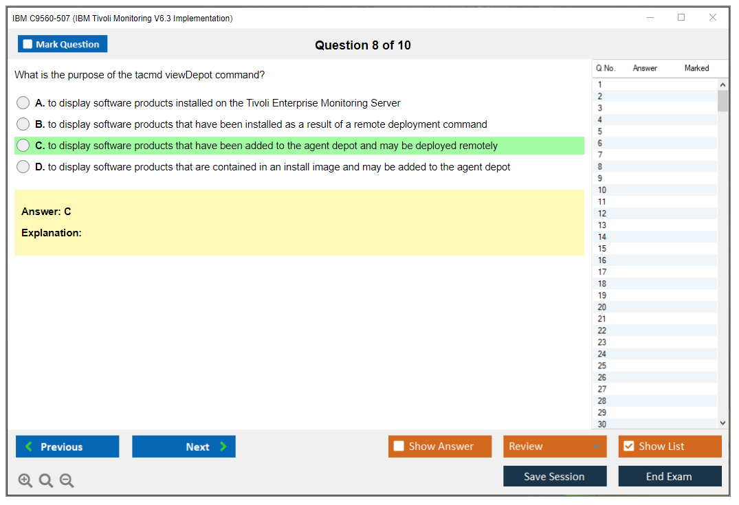 The IBM C9560-507 (IBM Tivoli Monitoring V6.3 Implementation) Exam is designed to validate the knowledge and skills necessary to implement and manage IBM Tivoli Monitoring V6.3 solutions. It covers various aspects such as architecture, installation, configuration, administration, and problem determination.